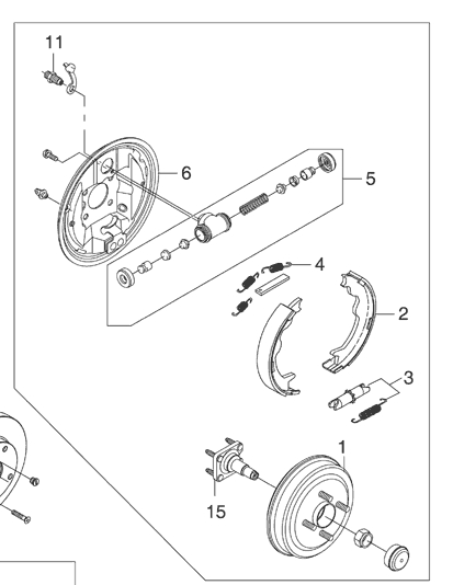 Między szczękami od hamulca ręcznego jest rozpierak z regulacją długości, w przypadku gdy hamulec tego typu pełni funkcje hamulca głównego to ów rozpierak jest wyposażony w mechanizm który automatycznie go rozkręca w celu kompensacji zużycia okładzin.