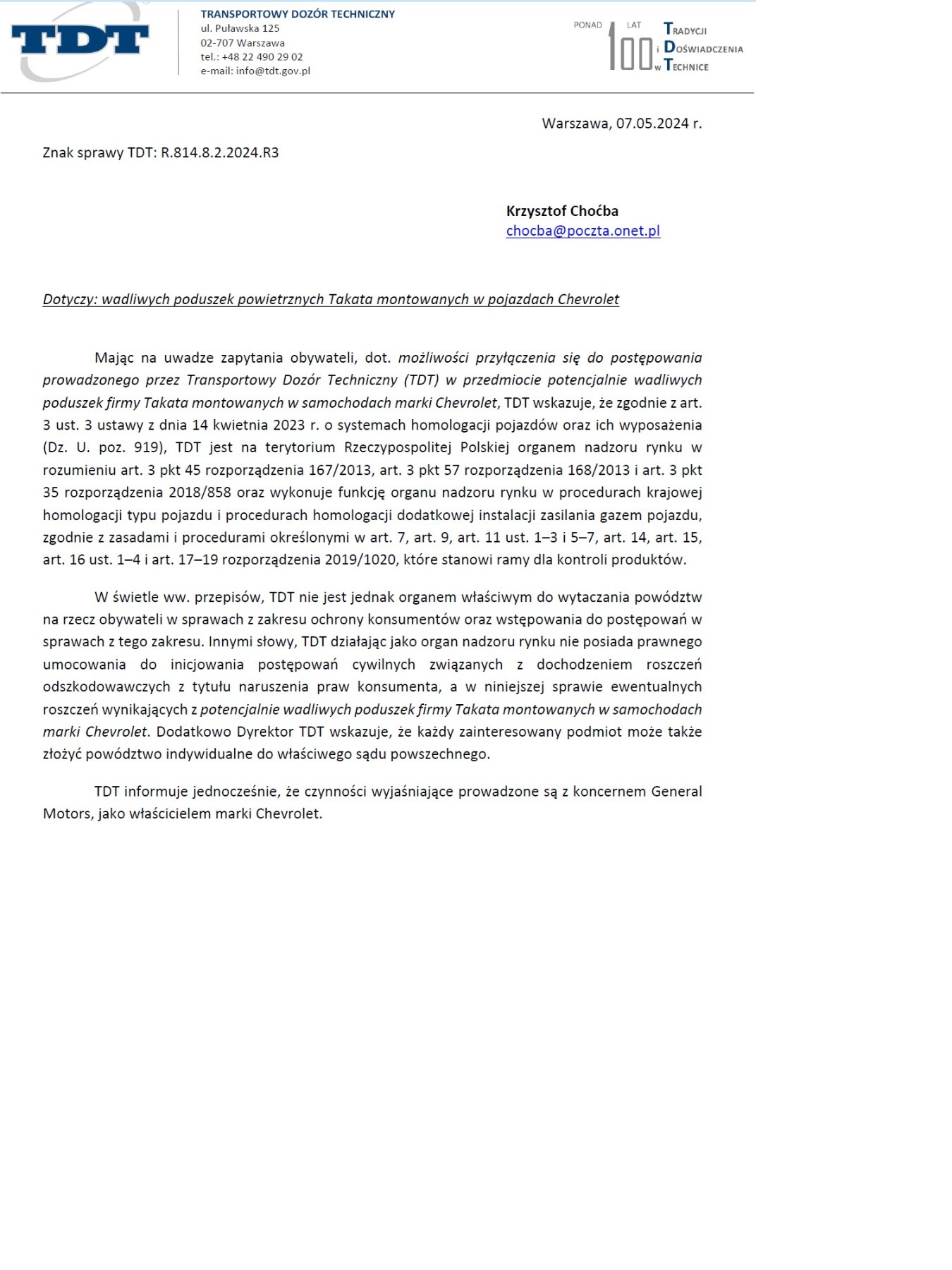 Każdy który ma wadliwy element w aucie zgłasza osobiście ,im wiecej zgłoszeń UOKiK otrzyma tym odzew będzie większy. Ja nie chciałbym weryfikować czy moja poduszka w moim Olku..urwie mi łeb