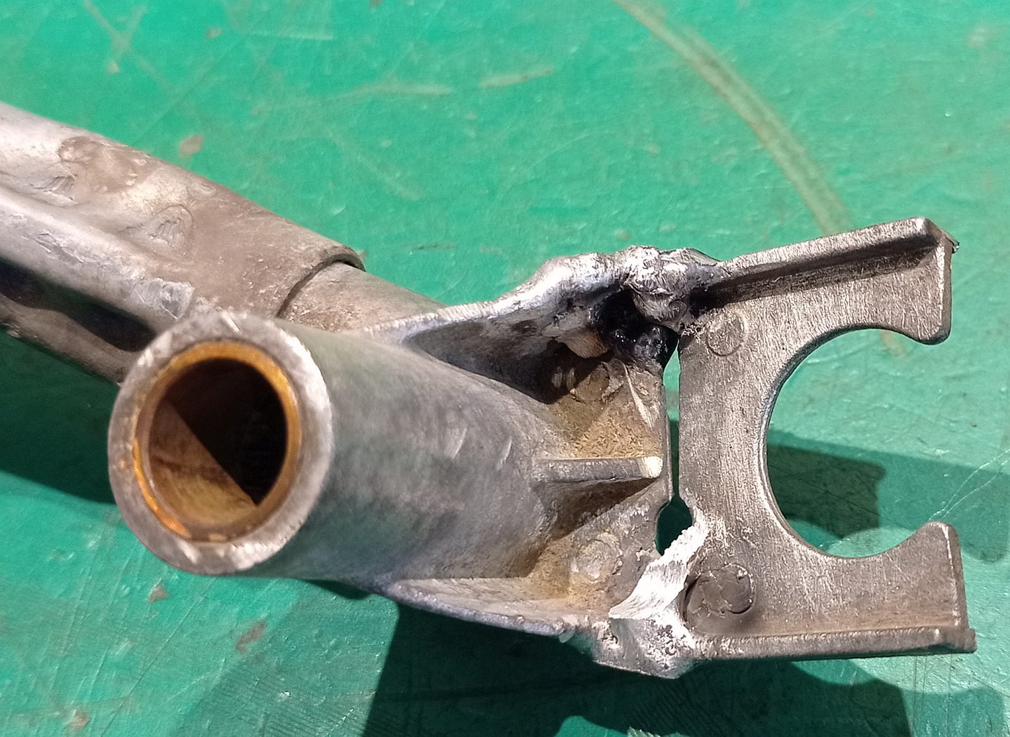 Na szczęście są na świecie ludzie potrafiący spawać dural: Inna sprawa, że zupełnie nie rozumiem jaki może być cel konstrukcji uchwytów z takim podłużnym otworem w newralgicznym punkcie, poza oczywistą podatnością na złamanie w przypadku jakiejkolwiek próby średnio fachowej naprawy
