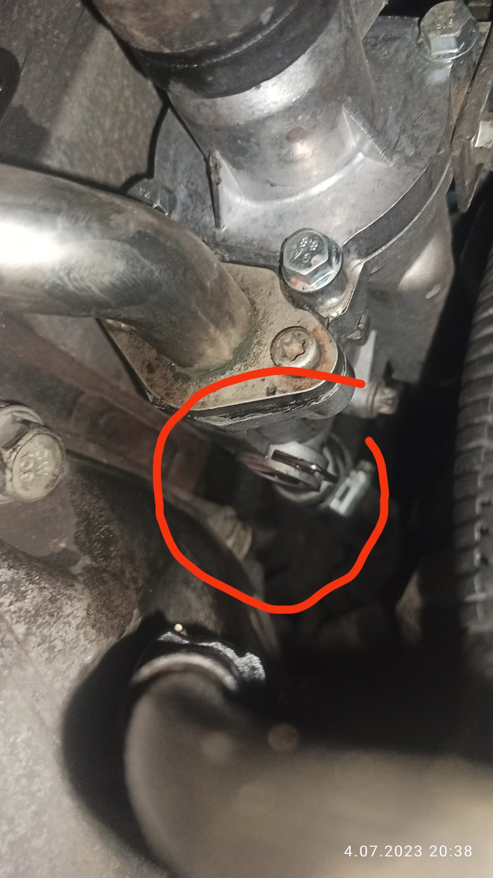 Witam . Miałem ostatnio wymieniana obudowę termostatu , dzisiaj zauważyłem że ubyło sporo płynu po analizie znalazłem od spodu termostatu takie miejsce , czy przypadkowo nie powinno być coś na wylocie ? Korek jakiś przewód , kapie z tego miejsca przepraszam za jakoś zdjęć ale dojście jest bardzo utrudnione . Nie jestem w 100%pewny ale wydaje mi się że jest to w tym miejscu