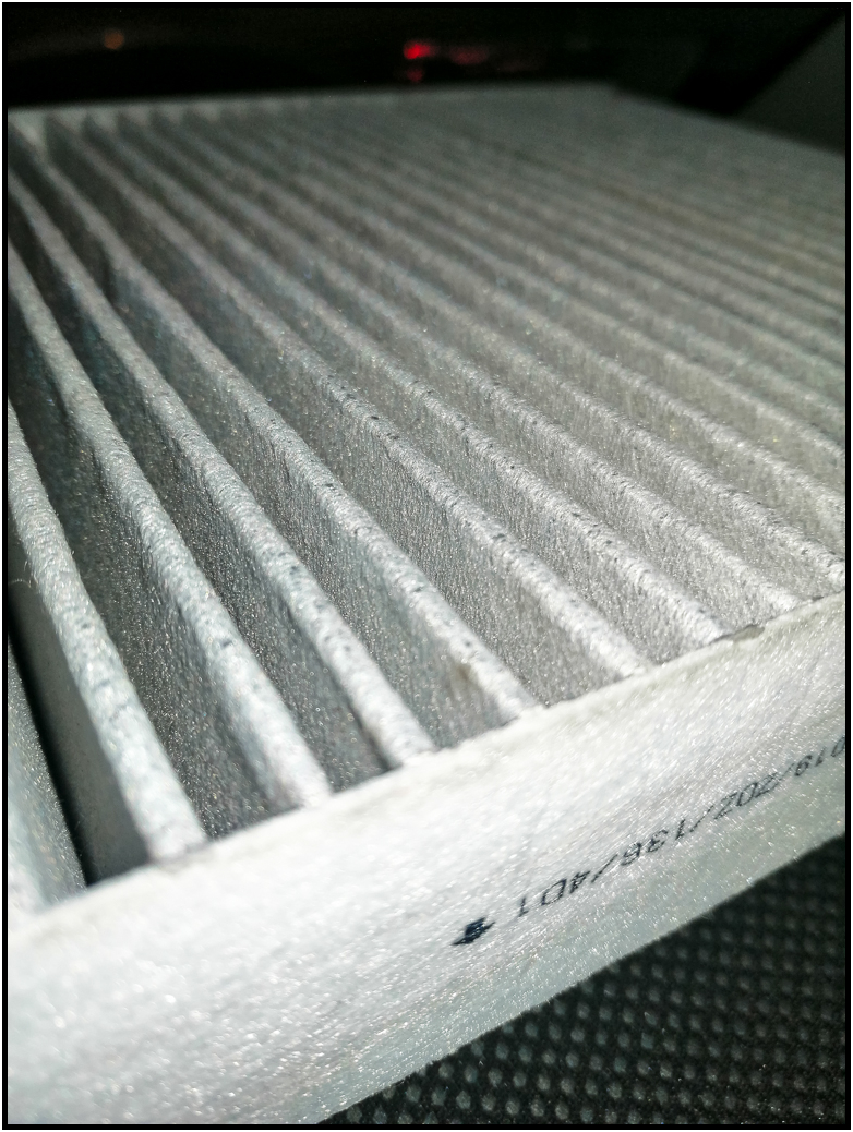 Nie miałem pod ręką filtra na zmianę. Wyciągnąłem i przeczyściłem z większych paprochów stary. Niestety zauważyłem, że jest wilgotny. Delikatnie, ale jednak. Niekorzystne zjawisko w takim miejscu. Po złożeniu, wentylator zaczął buczeć w niskim tonie, czym szybsze ustawienie, tym głośniej. Pomyślałem, że albo filtr się rozwarstwił, albo jakaś rura w tunelu gdzieś w układzie się rozłączyła. Zdarzało się przy końcówce nawiewu na nogi kierowcy ale odgłosu nie było. Inicjatorem buczenia okazał się średni liść, który wpadł pomimo uwagi poświęconej przy demontażu filtra. Liść wpadł na wirnik i tam sobie leżał. Palcami dostałem się do niego.
