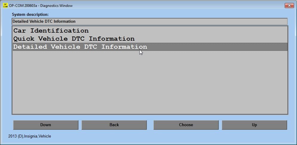 Możemy też wejść sobie jeszcze w zakładkę "Vehicle" Następnie w "Detailed Vehicle DTC Information" I poczekać chwile to program sprawdzi z jakimi modułami może się połączyć i czy są w nich jakieś błędy Co ciekawe u mnie pokazuje silnik F18D4 zamiast A14NET.