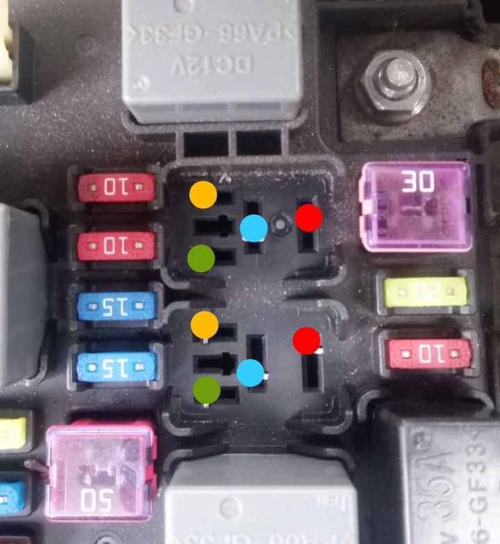 Sygnały najlepiej sprawdzić w gnieździe przekaźnika, miernikiem albo nawet zwykłym próbnikiem 12V.