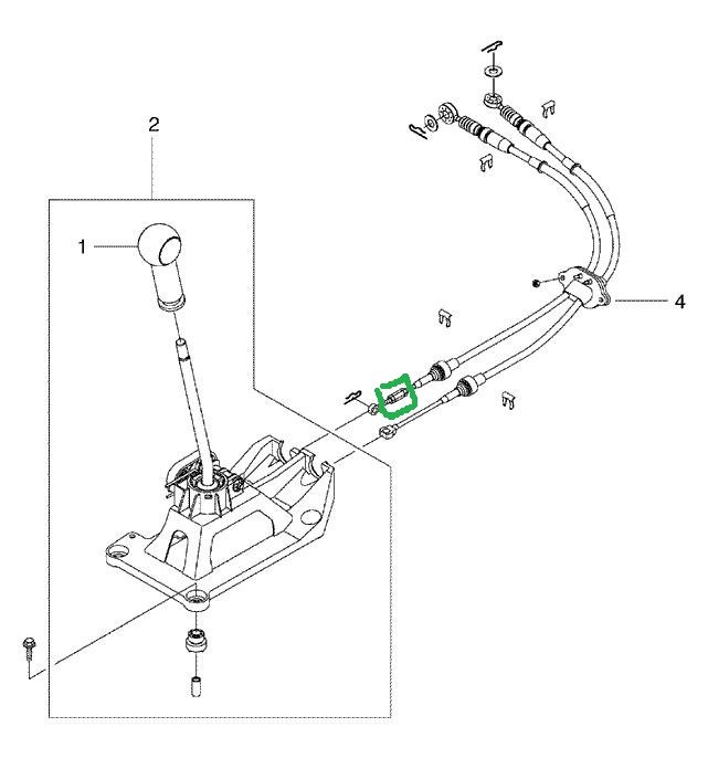 Sprawa wygląda następująco niestety linki biegów nie maja regulacji, a to co napisałem w oparciu o TIS jest związane najprawdopodobniej, że są linki serwisowe (nr katalogowy GM 96446179) nie na pierwszy montaż, które mają na jednym cięgnie śrubę "rzymską" do regulacji długości zaznaczone zielonym kolorem. Możliwe też, że serwisy linki całe przecinają gwintują i zakładają śrubę ściągającą, tak też naprawię swoje Aveo 1,2 8V.