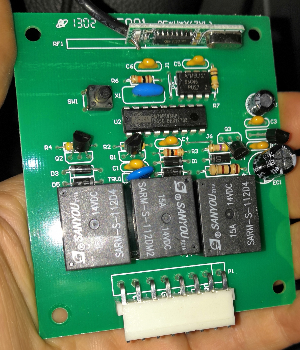 Przekaźniki to te 3 największe elementy na płytce, jeden odpowiada za migacze jeden za otwieranie zamków a drugi za zamykanie.