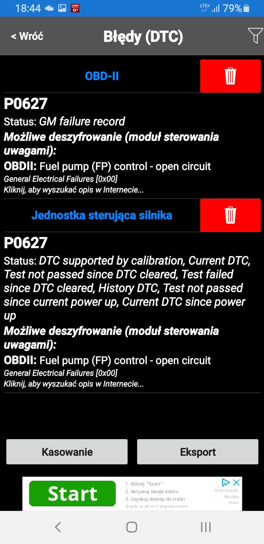 Niestety dzisiaj mimo usilnych starań w przekazaniu nowych pomiarów diagnostyki, poległem na braku możliwości uruchomienia silnika i skasowania check engine. Po nocy zapiolem kleme i pompa paliwa nie ruszyła. Brak zasilania pompy. Bledow dołączonych na zdjęciach nie udało się niczym usunąć. Oczywiście przekaznik pompy paliwa poprawiałem i zmienilem na drugi.