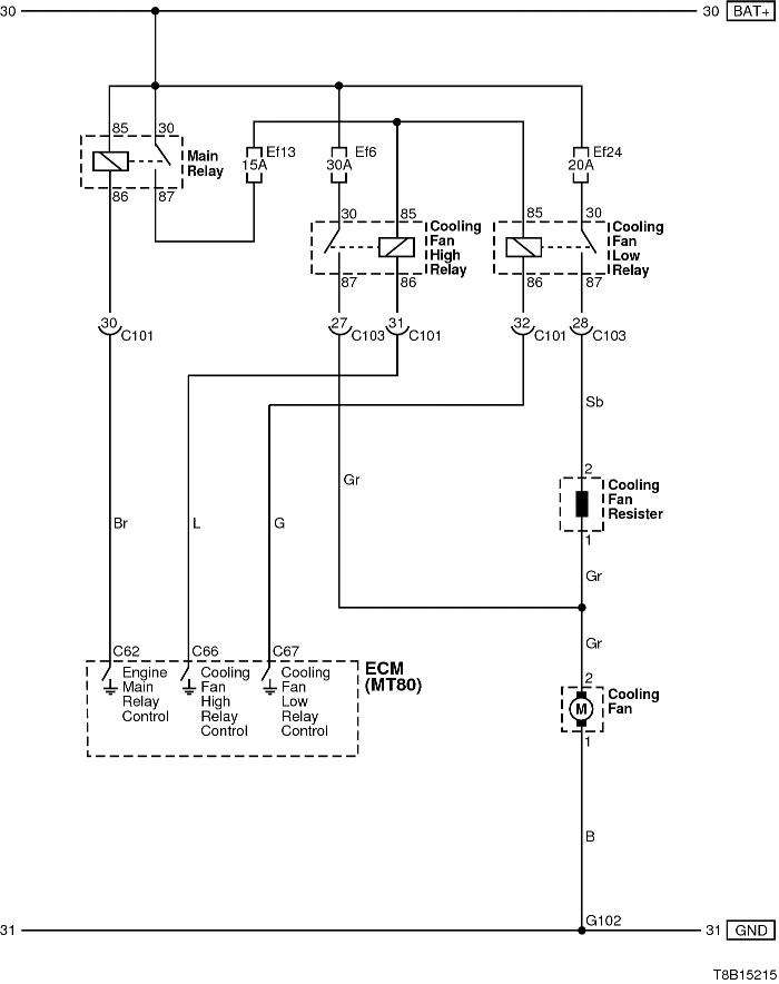 Obydwa przekaźniki sterowane są z ECM który podaje sygnał masy.