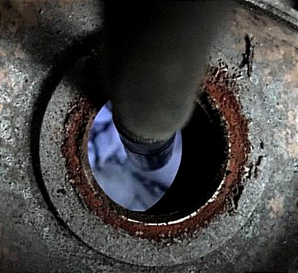 Zdjęcie wykonane telefonem. W otwór po sondzie włożona kamera inspekcyjna z latarką.