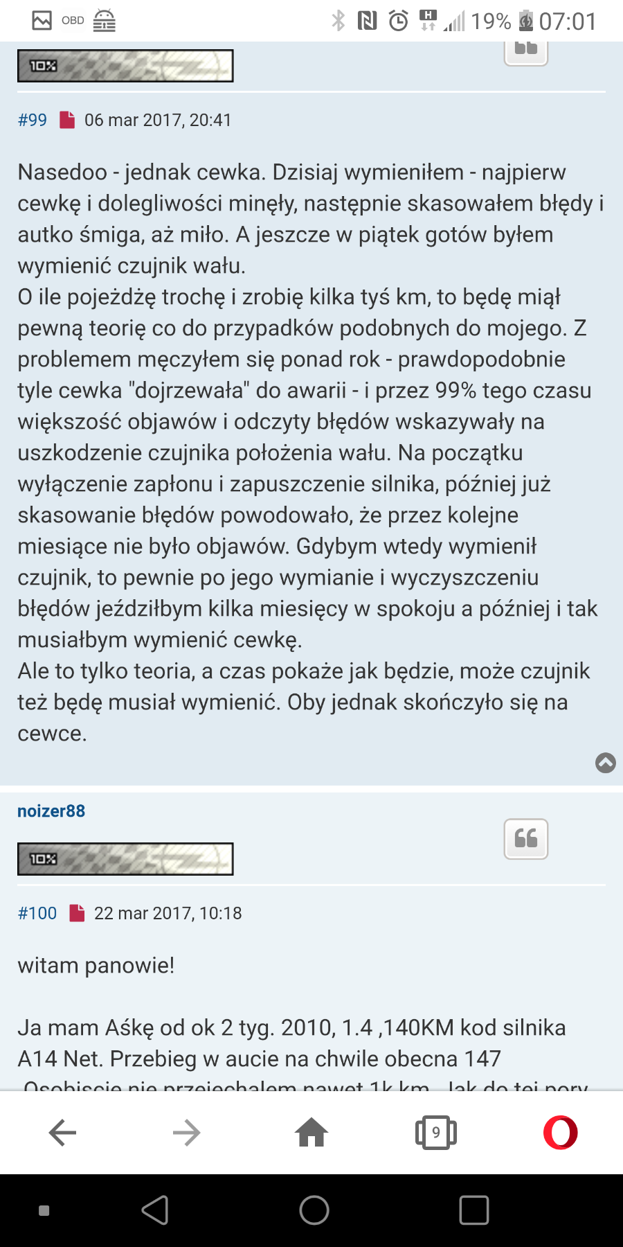 Na forum opla znalazłem wpisy, że to wcale nie kwestia czujnika tylko cewki (w pakiecie z świecami). Co sądzicie o tej koncepcji?