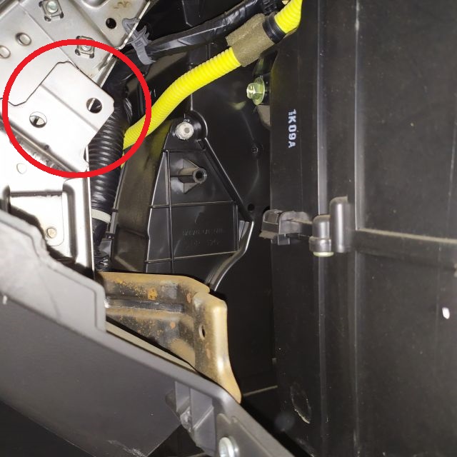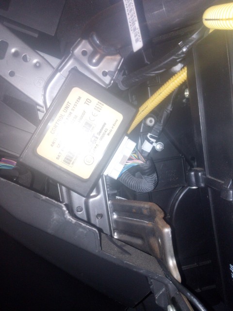 Moduł alarmu jest na wierzchu, widoczny zaraz po zdemontowaniu schowka, mocowany do tej blachy.