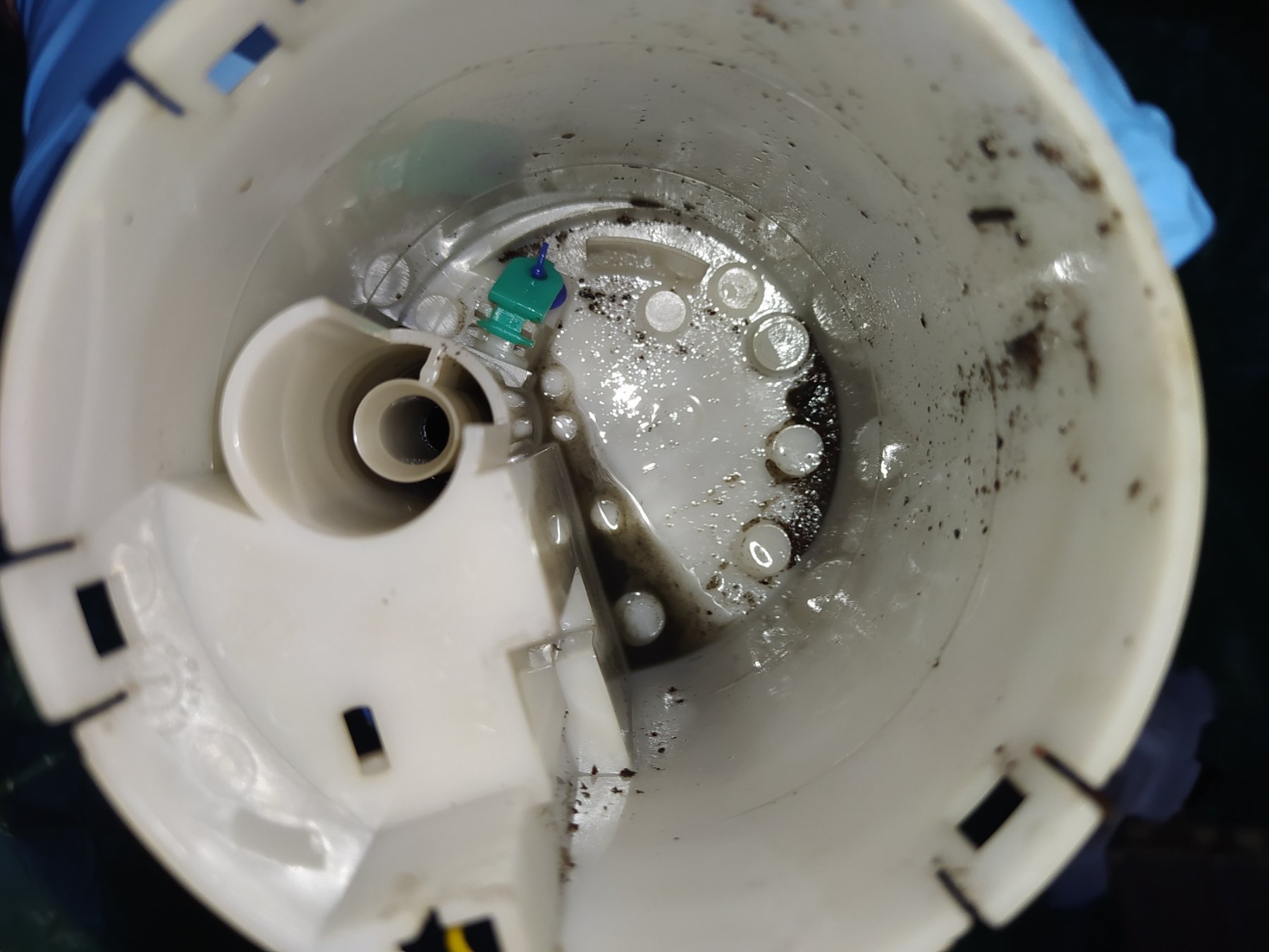 Kolejne 3 godziny zabawy przy Aveo. W baku zero wody, czysty jak łza. (te drobiny które widać, wpadły przy wyciąganiu kosza pomimo odkurzenia-już ich nie ma) Było dużo czarnego syfu i wody w koszu pompy, filierek wymyłem bo nie miałem niczego na podmianę-zawalony był dokumentnie. Elementy kosza pompy wyglądają przyzwoicie. Czemu w baku wody nie było pomimo że chwilę wcześniej leciała z paliwem , archiwum X. Co prawda dolałem 0,5 l denaturatu i jakiś środek STP dedykowany, ale to i tak niebywałe zjawisko że w koszu woda była , a w baku nie. Wsadziłem telefon do baku, włączyłem nagrywanie i 360 stopni zrobiłem, zero niczego , jak z fabryki.
