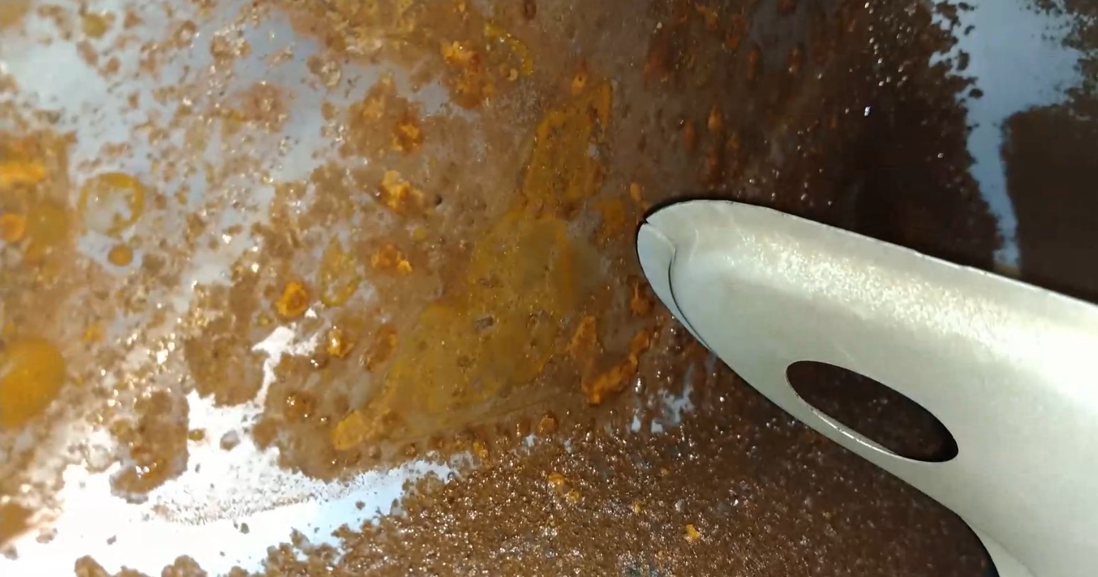 Ten filtr zapchany na maksa (da się wypłukać). Tak samo da się przepłukać pompkę.