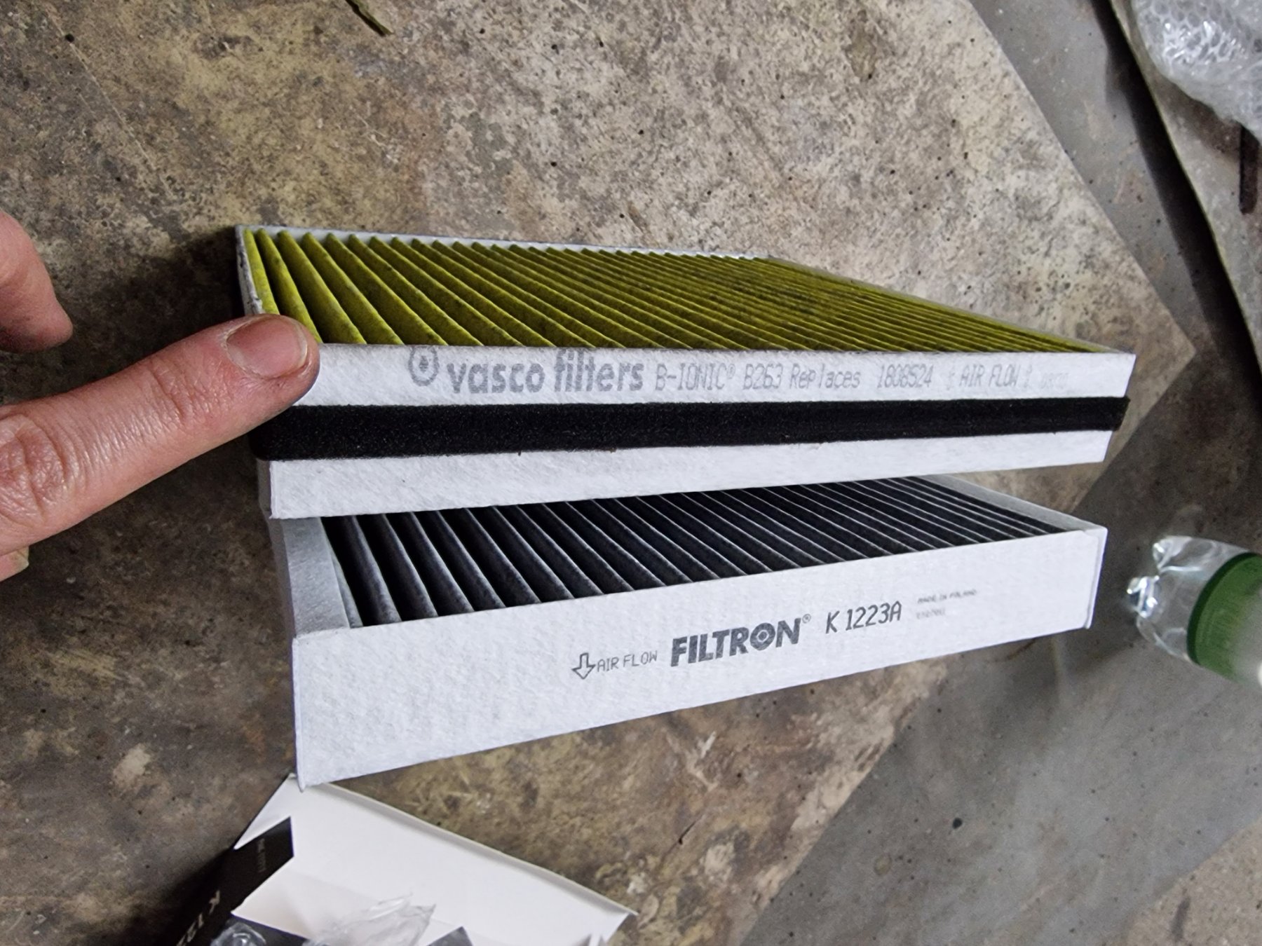 Straszny badziew z filtra Filtrona, nie dość że nie ma zewnętrznych uszczelnień to jeszcze materiał to jakiś milimetrowy papier który palcem można przedrzeć. Pytanie czy w nim jest w ogóle węgiel aktywny bo więcej niż filtr, waży ten karton w który był zapakowany...