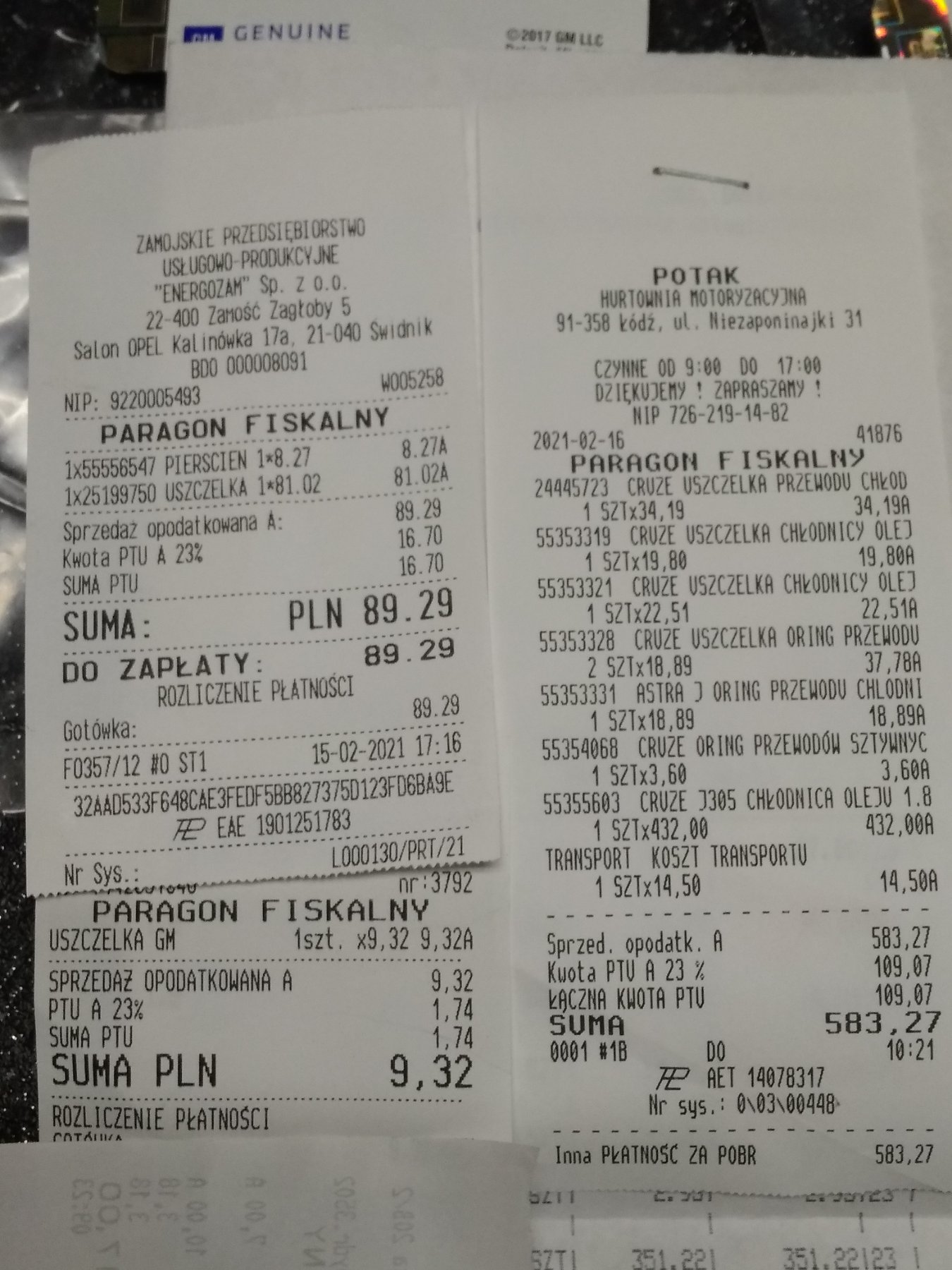 Przepraszam, że tak pod swoim postem, ale załączam ceny 11 uszczelek i chłodnicy. Victor Rainz 21,-.