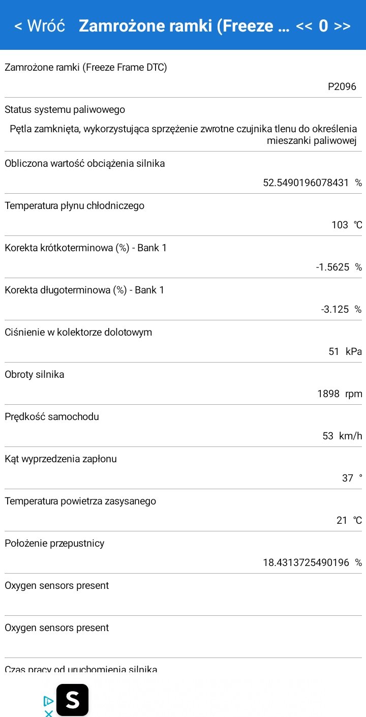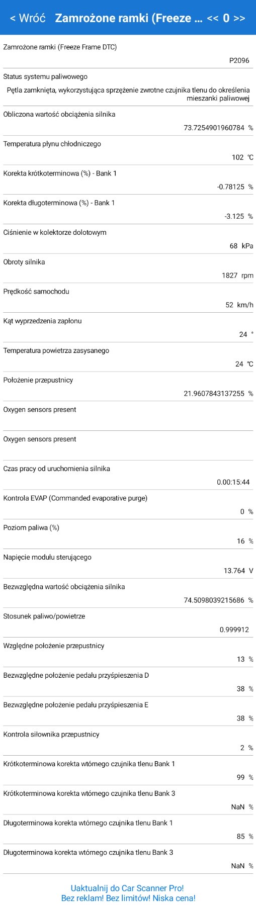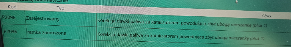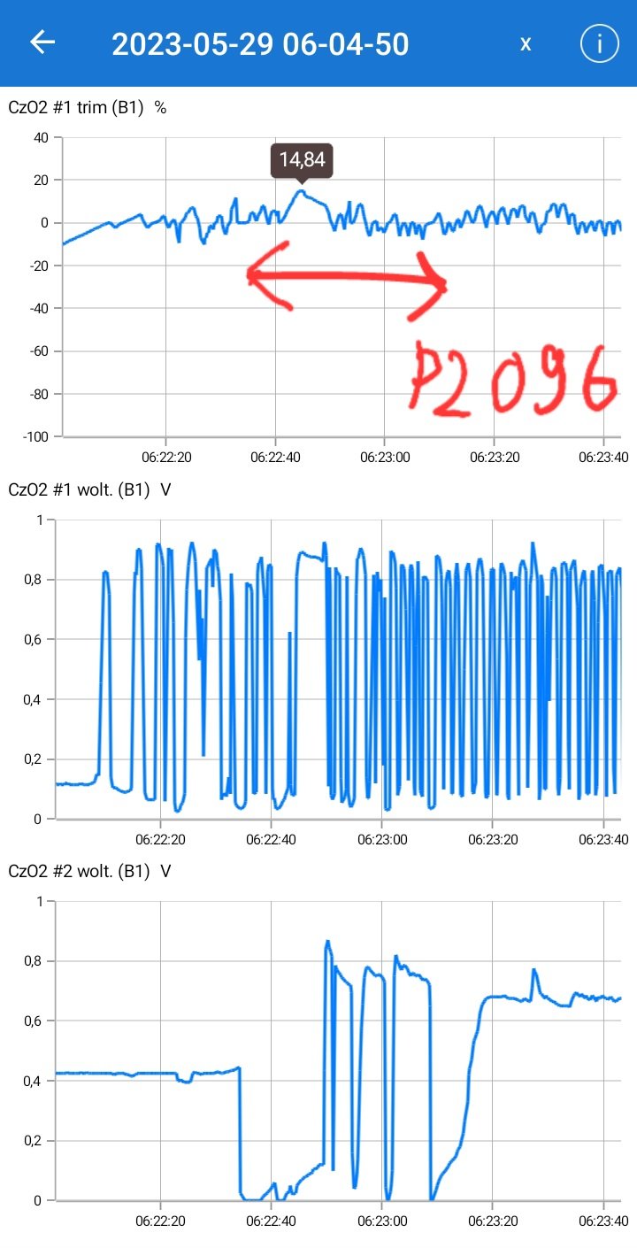 i w zaznaczonych okresach błąd P2096 wyskoczył na zegarach.