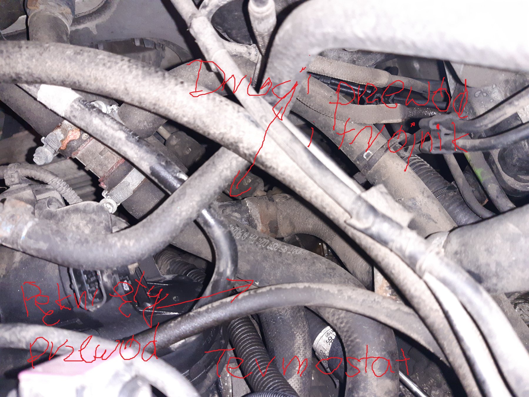 Nie będę zakładał nowego tematu, więc napisze tutaj. Pękł mi przewód od płynu chłodniczego, który idzie od termostatu do nagrzewnicy, ten górny. Przy okazji chciałbym wymienić też ten drugi przewód, który też idzie do nagrzewnicy oraz zbiorniczka wyrównawczego, ale jest na nim taki trójnik. Tylko nie wiem czy taki jest oryginalny przewód z tym trójnikiem czy jest dorobiony bo jest założony gaz.