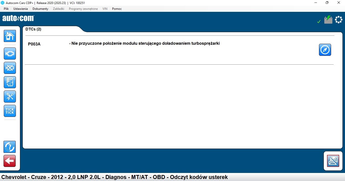 Jeżeli zczytamy błędy z auta, to powinien być widoczny tylko i wyłącznie błąd P003A "Nie przyuczone położenie modułu sterującego doładowaniem turbosprężarki". Zatem jeżeli mamy tylko ten błąd to jest "OK" i możemy iść dalej. Jeżeli natomiast pojawiają się również inne błędy w momencie odczytu, to przeważnie mamy problem ze szczelnością układu doprowadzającego powietrze w układzie turbo. Zatem jeżeli mamy problemy ze szczelnością układu to polecam poczytać proces naprawy jaki przeszło moje auto, aby układ był szczelny. W Cruze zawsze wygląda to podobnie.