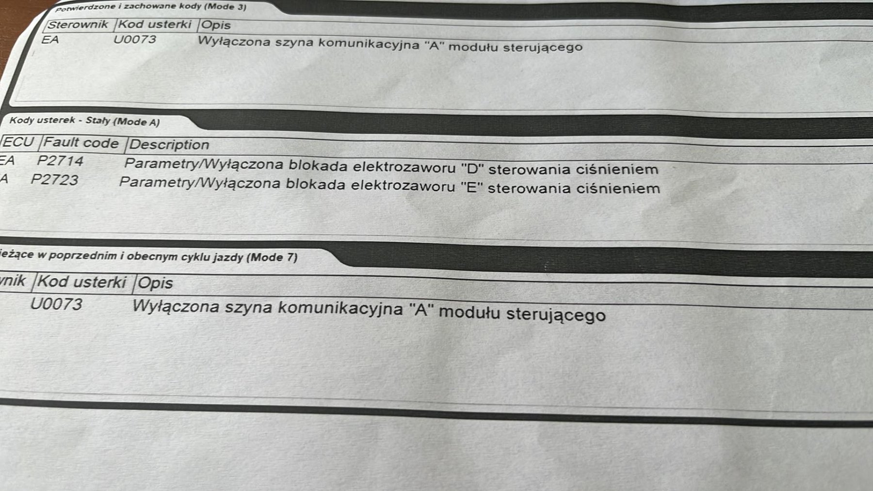 Znane błędy P200C , P2714 Pressure Control Solenoid D Performance /Stuck oraz P2723 Pressure Control Solenoid E Performance /Stuck