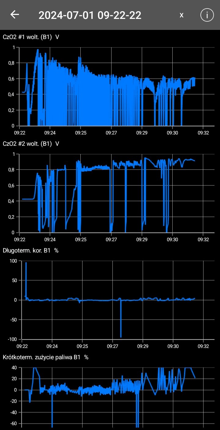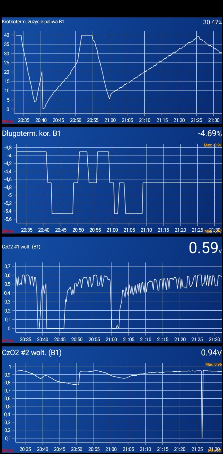 Jeszcze nie mam check na kokpicie ale sonda nr 1 zaczęła szaleć, stać na 0V i korekty wywala na +40%