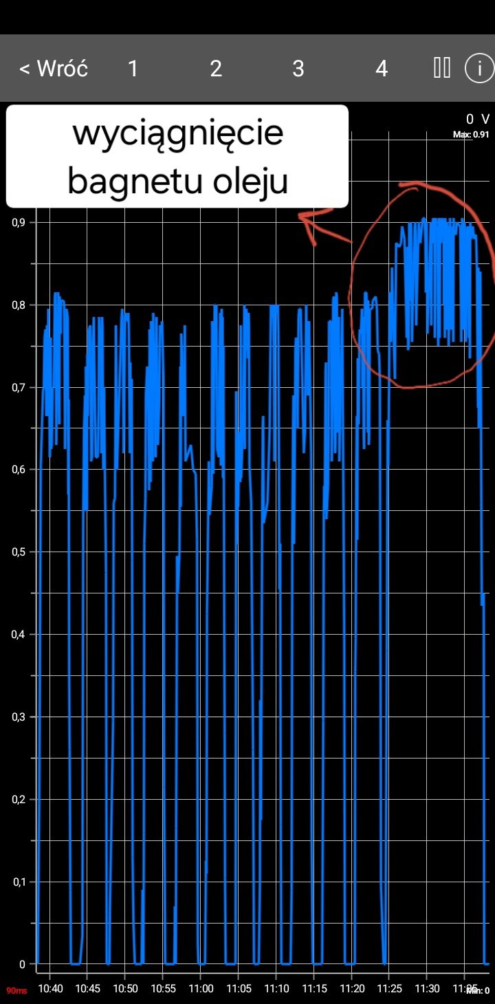 Napięcia do masy na lambda nr 1 wg wtyczki (Opel):