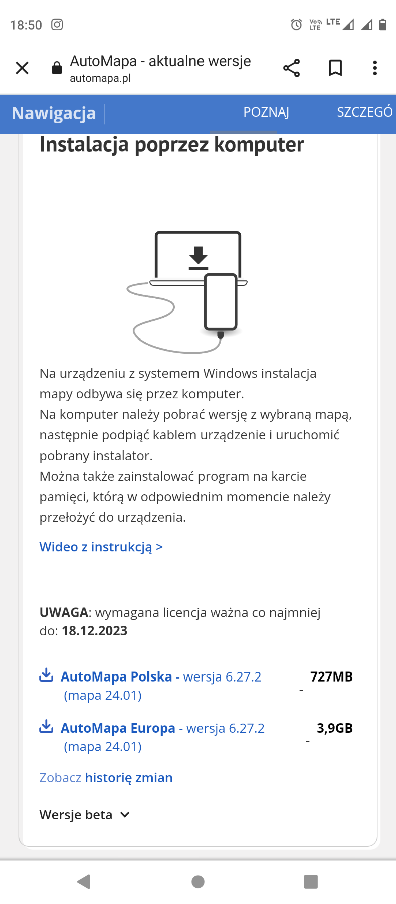 Link do pobrania map od ich producenta (jednak instalacja możliwa po wykupieniu subskrypcji)