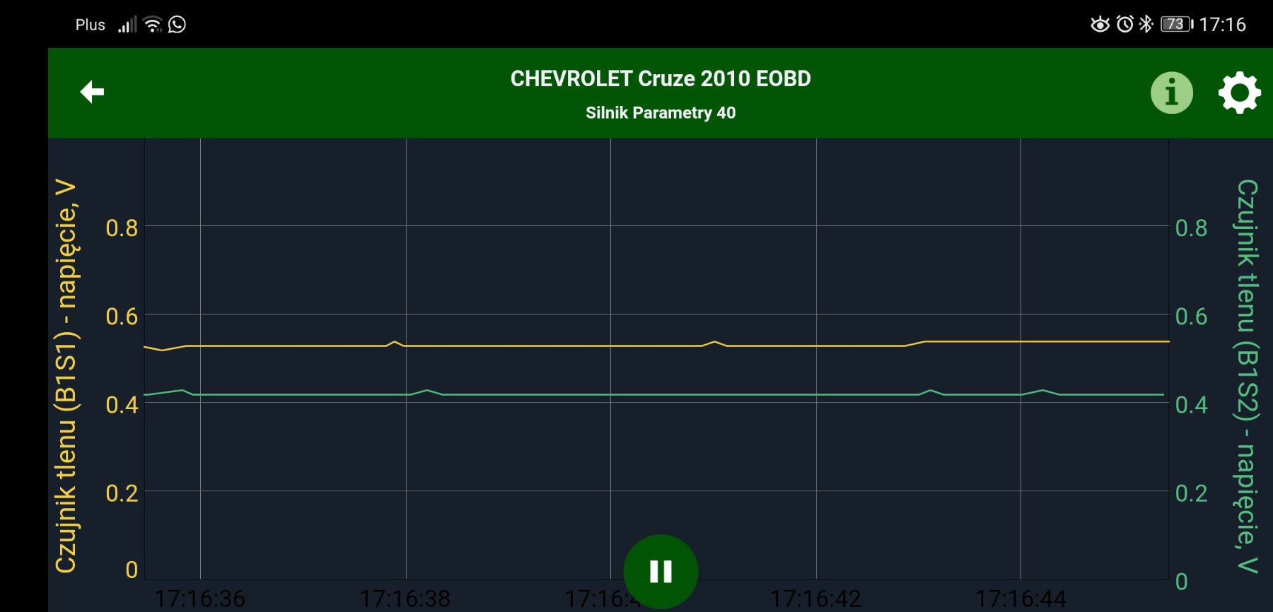 Wykresy przedstawiają mniej więcej 10 min działania samochodu w większości czasu na wolnych obrotach przed ostatni wykres jest po zabawie pedałem gazu, a ostatni jest gdy trzymałem go na 3tys obrotów. Wykresy dodały się trochę odwrotnie dlatego trzeba patrzeć na nie od dołu do góry.