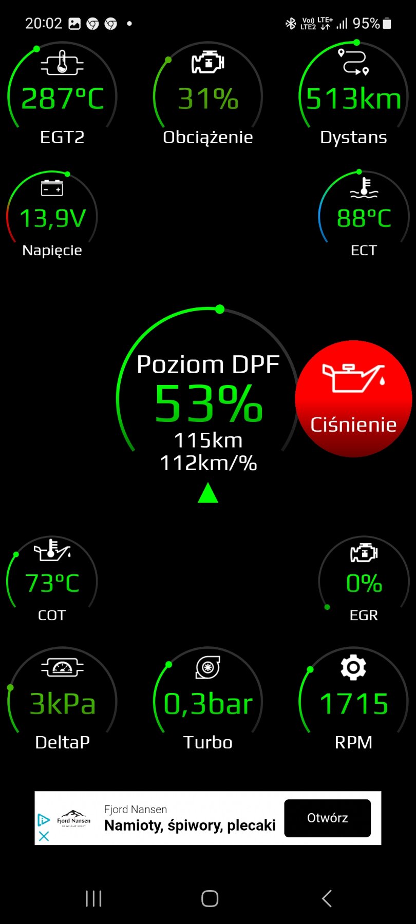 U mnie z samochodem już wszystko ok, zrobione trzy trasy do Niemiec. Samochód jeździ bardzo dobrze, brak błędów, wypalanie filtra cząstek stałych prawidłowo. Jak mówiłem apka niedopracowana. Na nowej nie pokazuje temp EGT. Tak jak podejrzewałem jednorazowy kaprys z powodu upału.