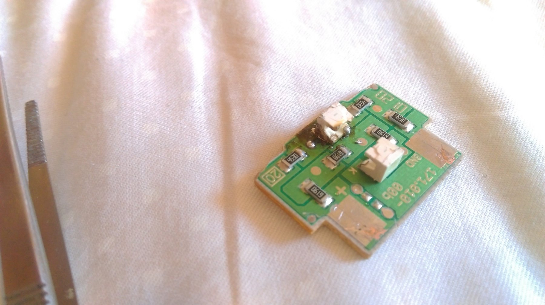 A po dotknięciu bezposrednio diody podświetlenia przycisków zaświeciła się właśnie dioda która ja przylutowałem