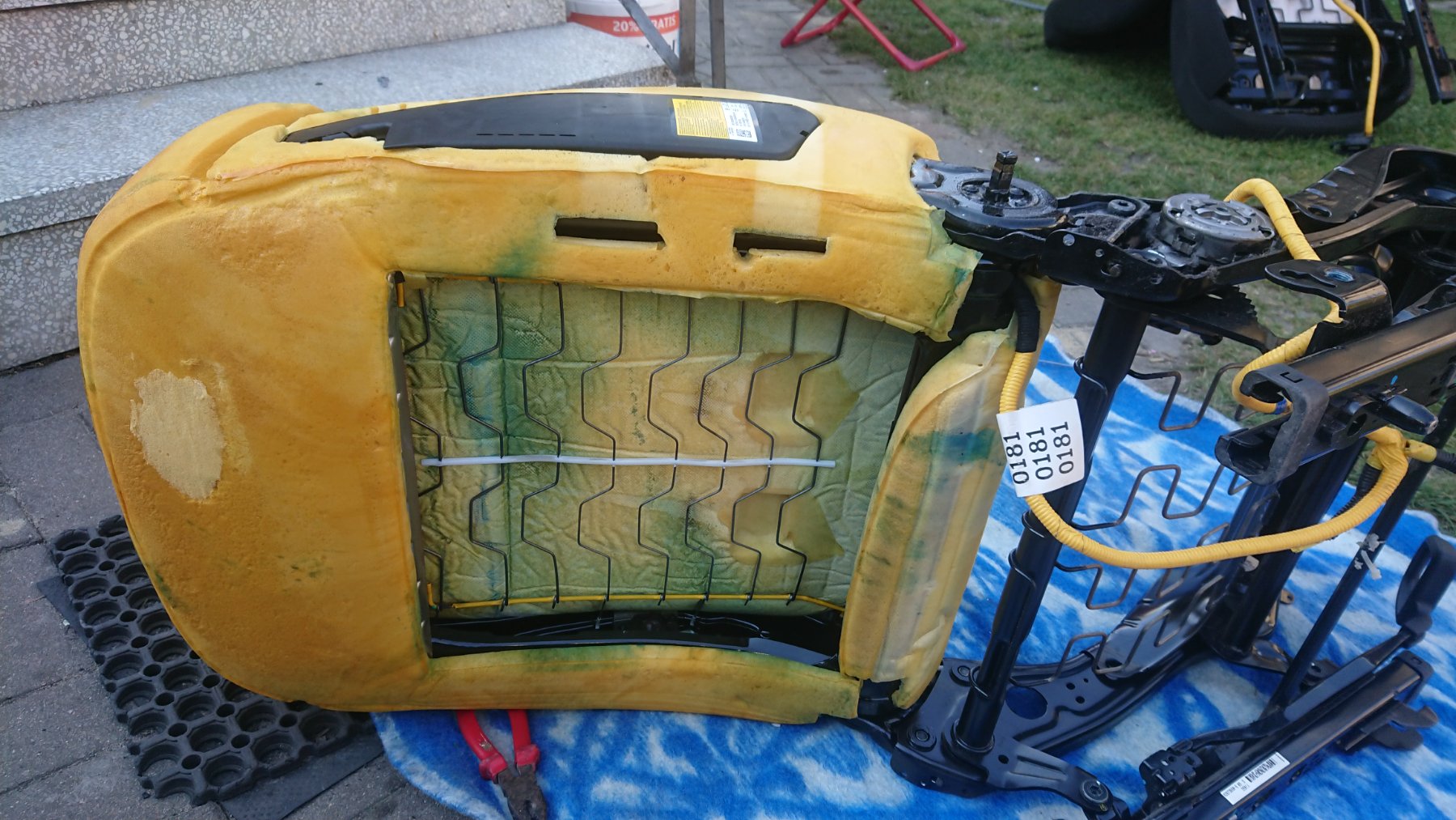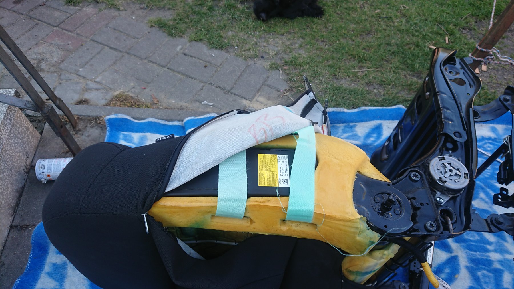 Po odsłonieniu poduszki bocznej odpinamy instalację, przekładamy ją do nowego fotela. Do tego jeszcze trzeba przełożyć gąbkę siedziska. I jak kto woli swoją tapicerkę.