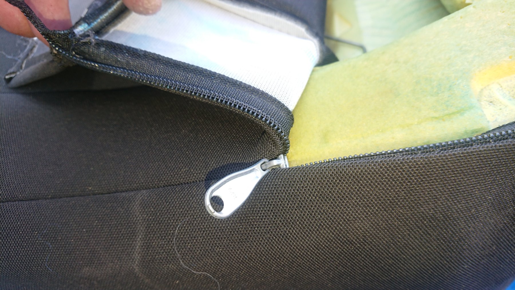 Tapicerka oparcia na bokach zapięta jest na zamek błyskawiczny(ciekawy patent), co znacznie ułatwia jej zdjęcie.