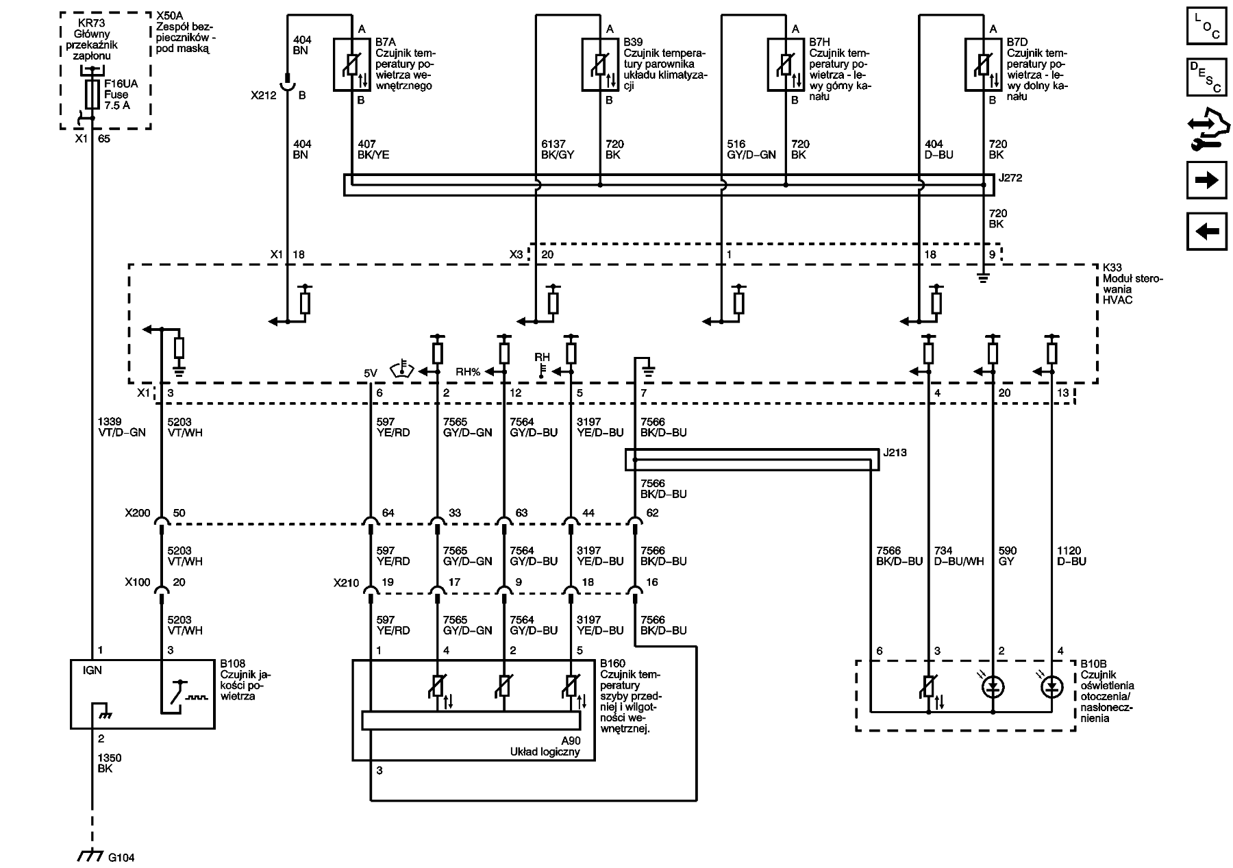 . Nie do końca jestem pewien gdzie znajduje się czujnik temp. wnętrza. Na schemacie widnieje, jako osobny komponent. Ale przy klimie automatycznej może się znajdować w kopułce czujnika naświetlenia z przodu kokpitu (dwa w jednym), może ktoś to potwierdzić, że tak jest.