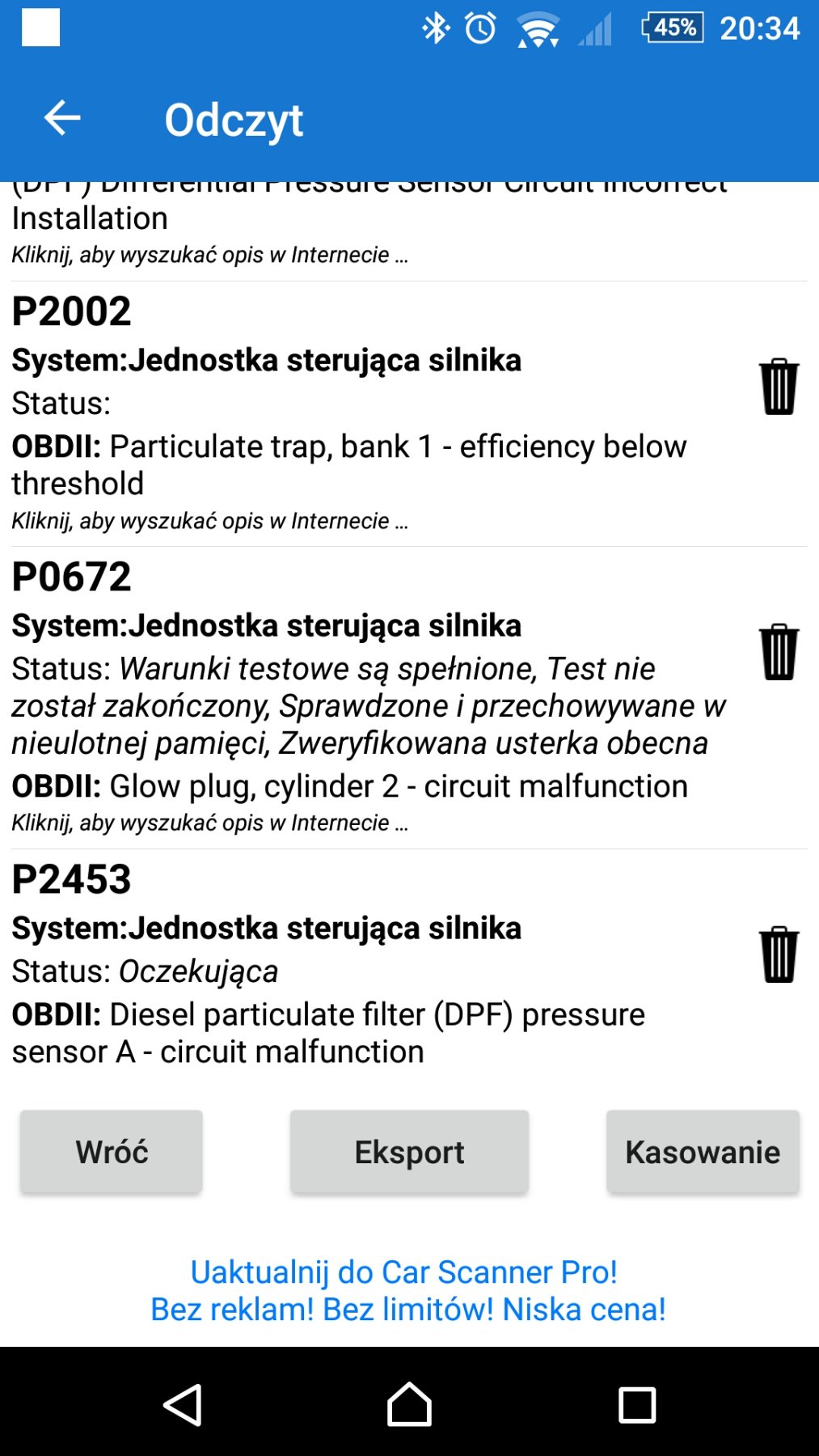 Pytałeś o sprawdzanie kiedy wypala się DPF, więc Ci poleciłem aplikację DPF Info. Podejrzewam, że ten Car Scanner takiej informacji Ci nie udzieli.