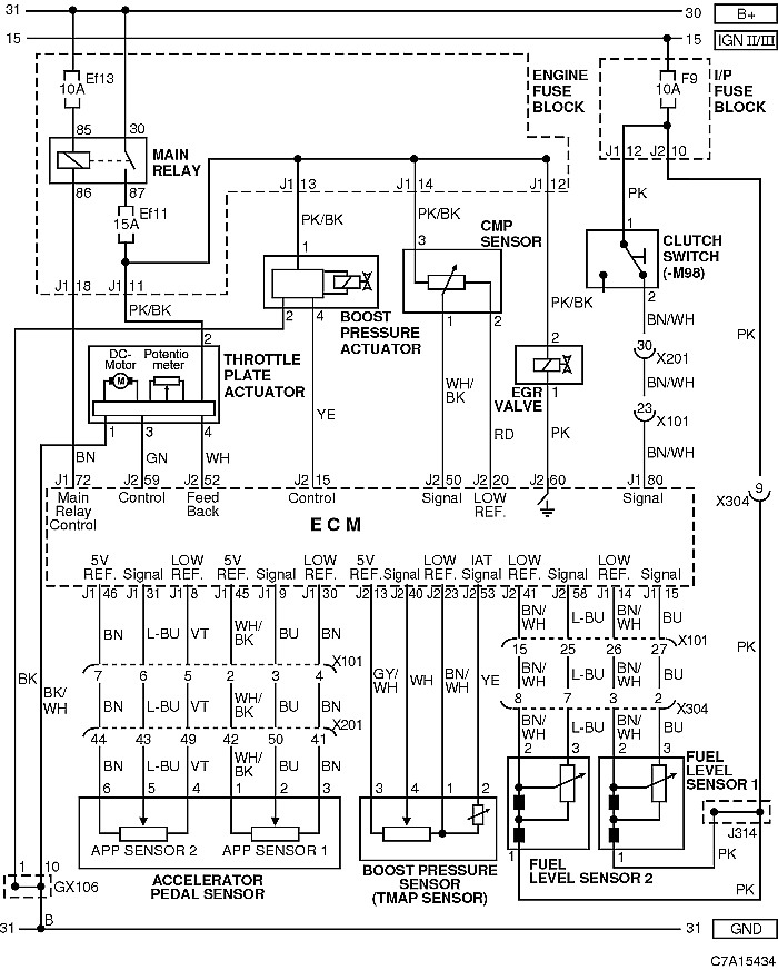 Jeżeli przepustnica chodzi znaczy, że ECM załącza napięcie na przekaźnik, trzeba rozklimić, który czujnik daje mu do tego sygnał, ze schematu podejrzewałbym czujnik pedału przyśpieszenia lub czujnik ciśnienia TMAP, ale może być też dużo innych sygnałów, a jeżeli dużo awarii zostało naprawionych po wymianie ECM znaczy, że właśnie ten moduł pada.