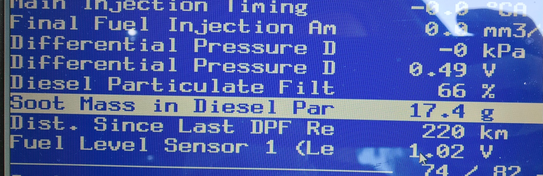 - jak przy obrotach 2700rpm zapełnienie dpf nagle z wartości 74% w moment spada na 66%