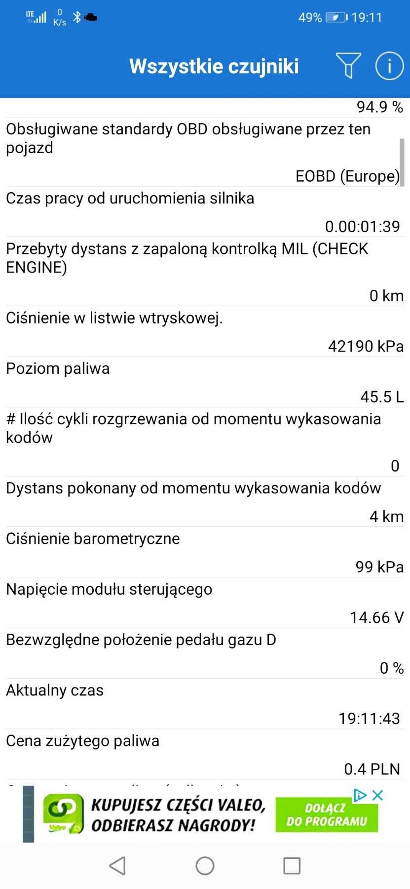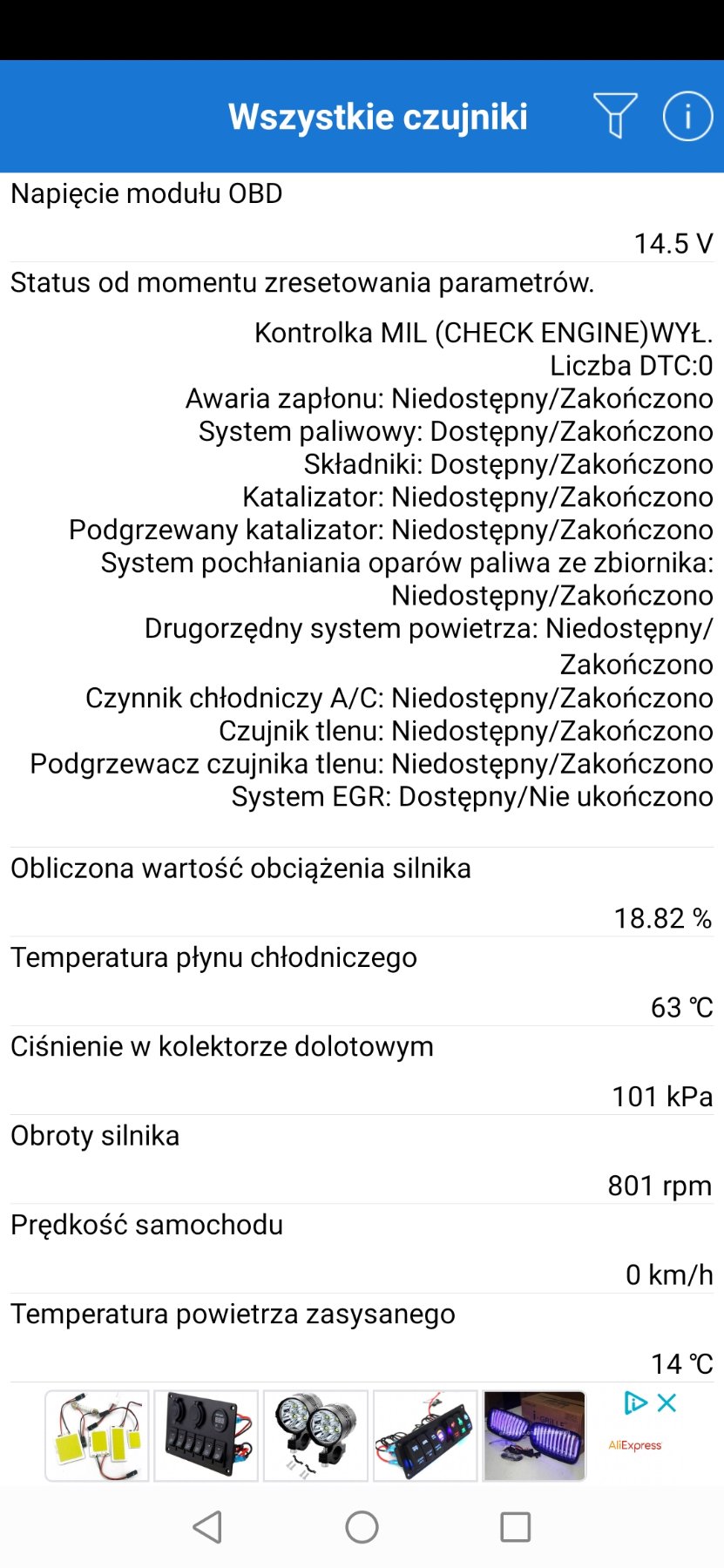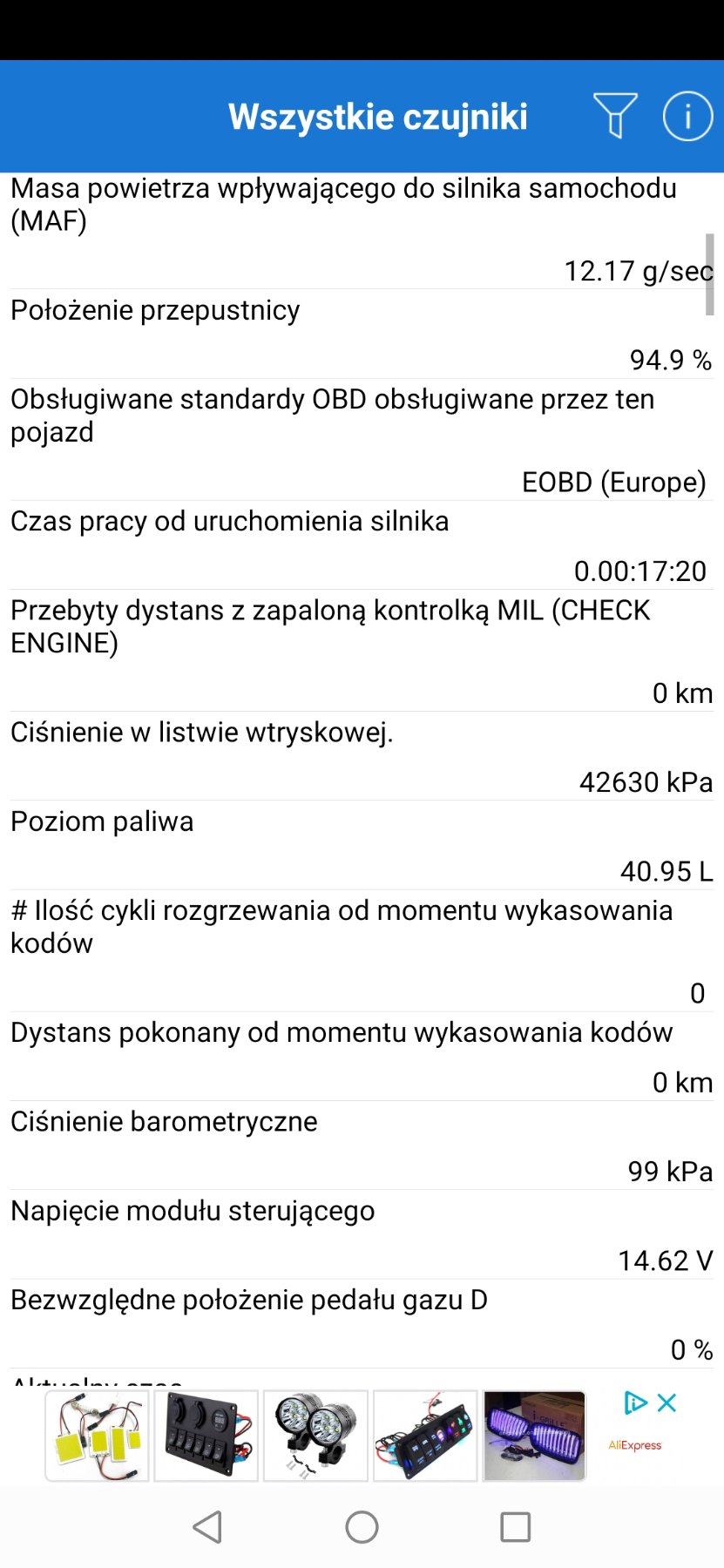 Ciśnienie barometryczne cały czas 98 kPa wogóle się nie zmienia przy przegazowaniu i nawet przy wyłączonym silniku