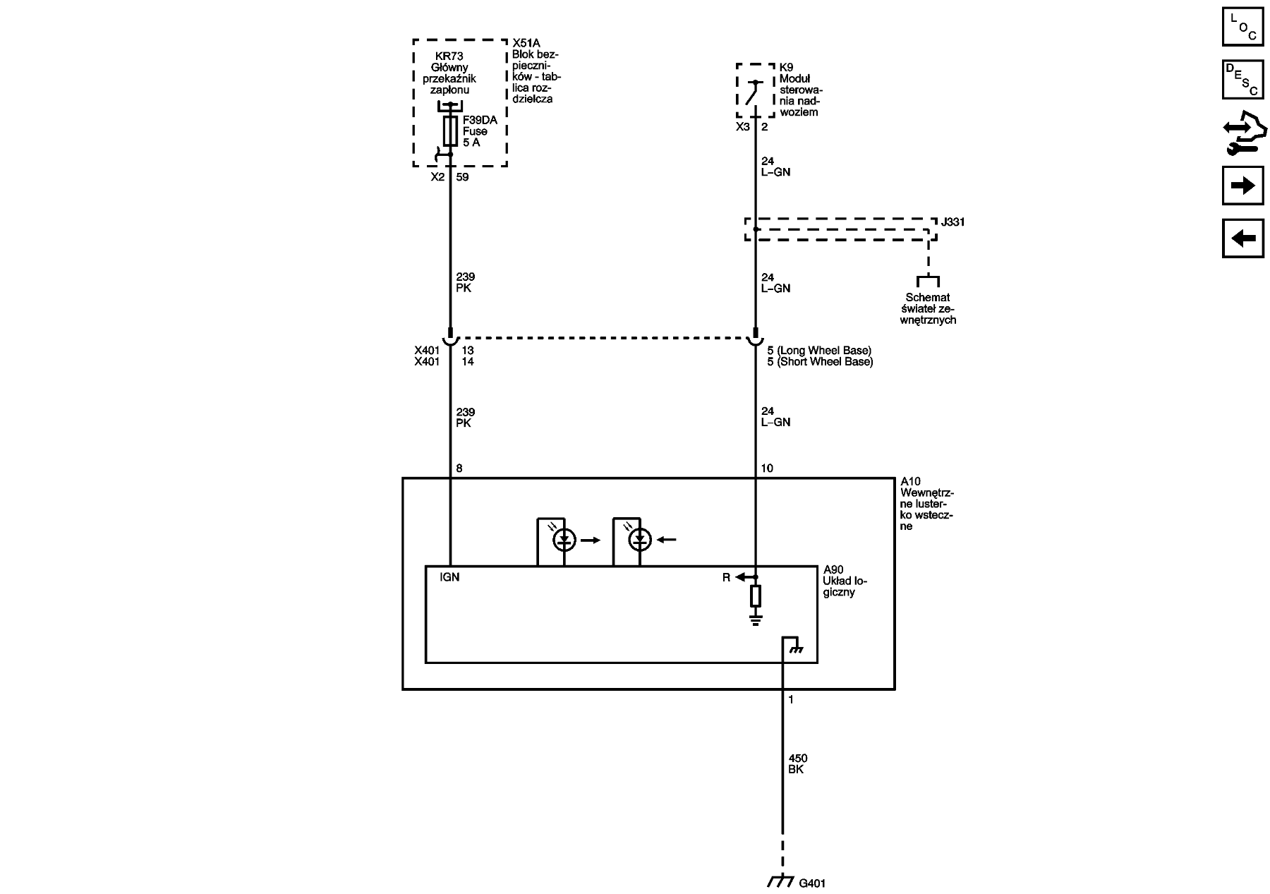 Ogólnie schemat wycieraczek wygląda tak: Tak natomiast wygląda lusterko wsteczne: Według tego lusterko powinno być zasilone z bezpieczniak F39