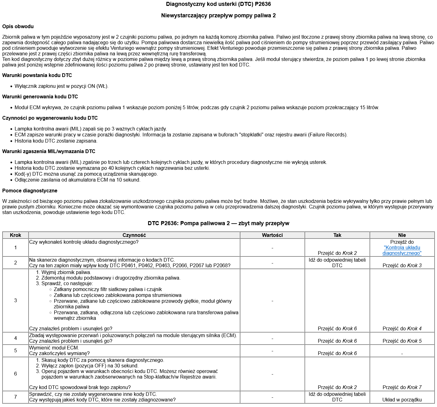 - P2636 – pompa paliwa „B” niski przepływ/wydajność