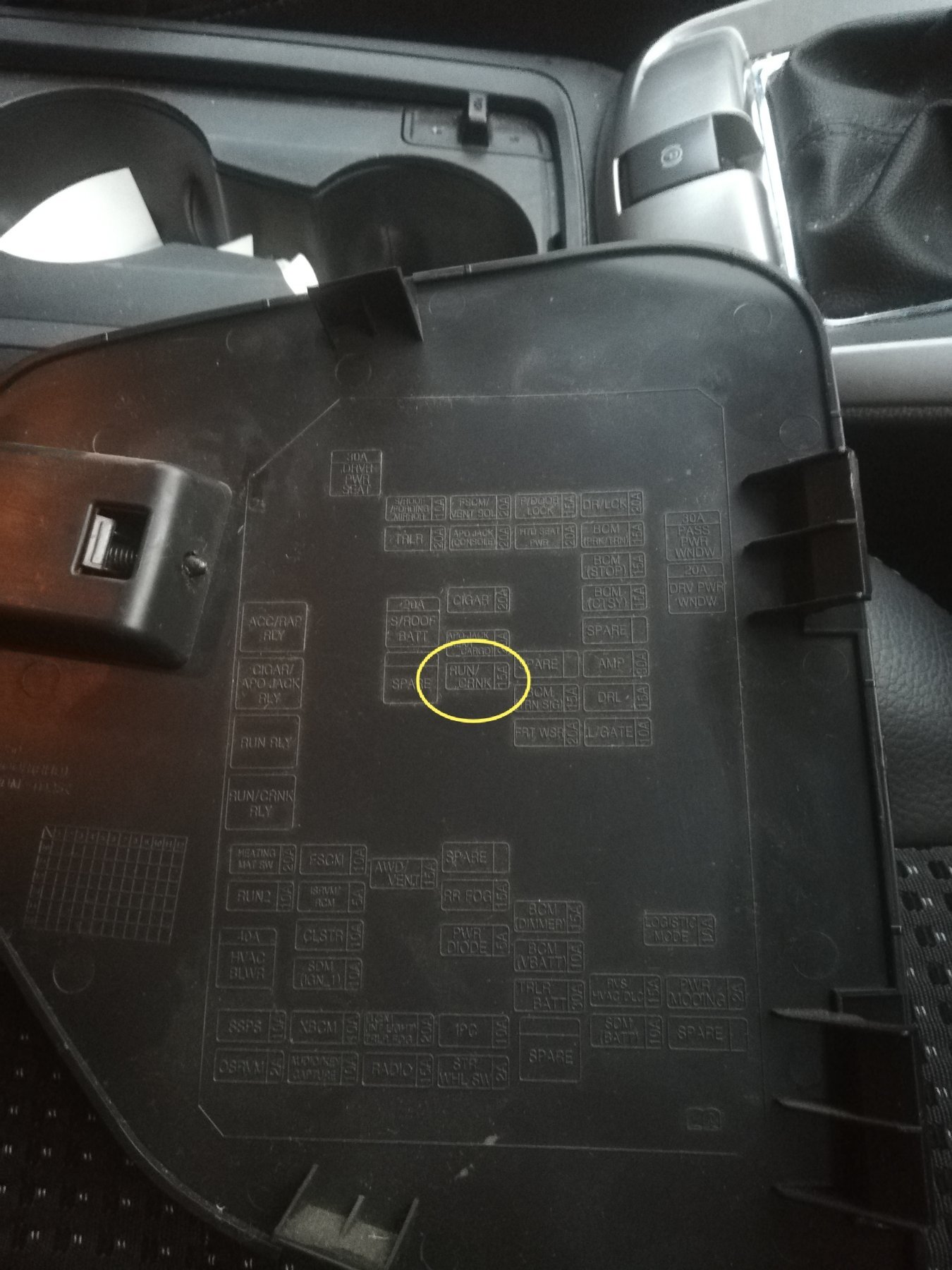 Pali bezpiecznik Run/crank zaznaczony na załączniku w w ośrodku samochodu