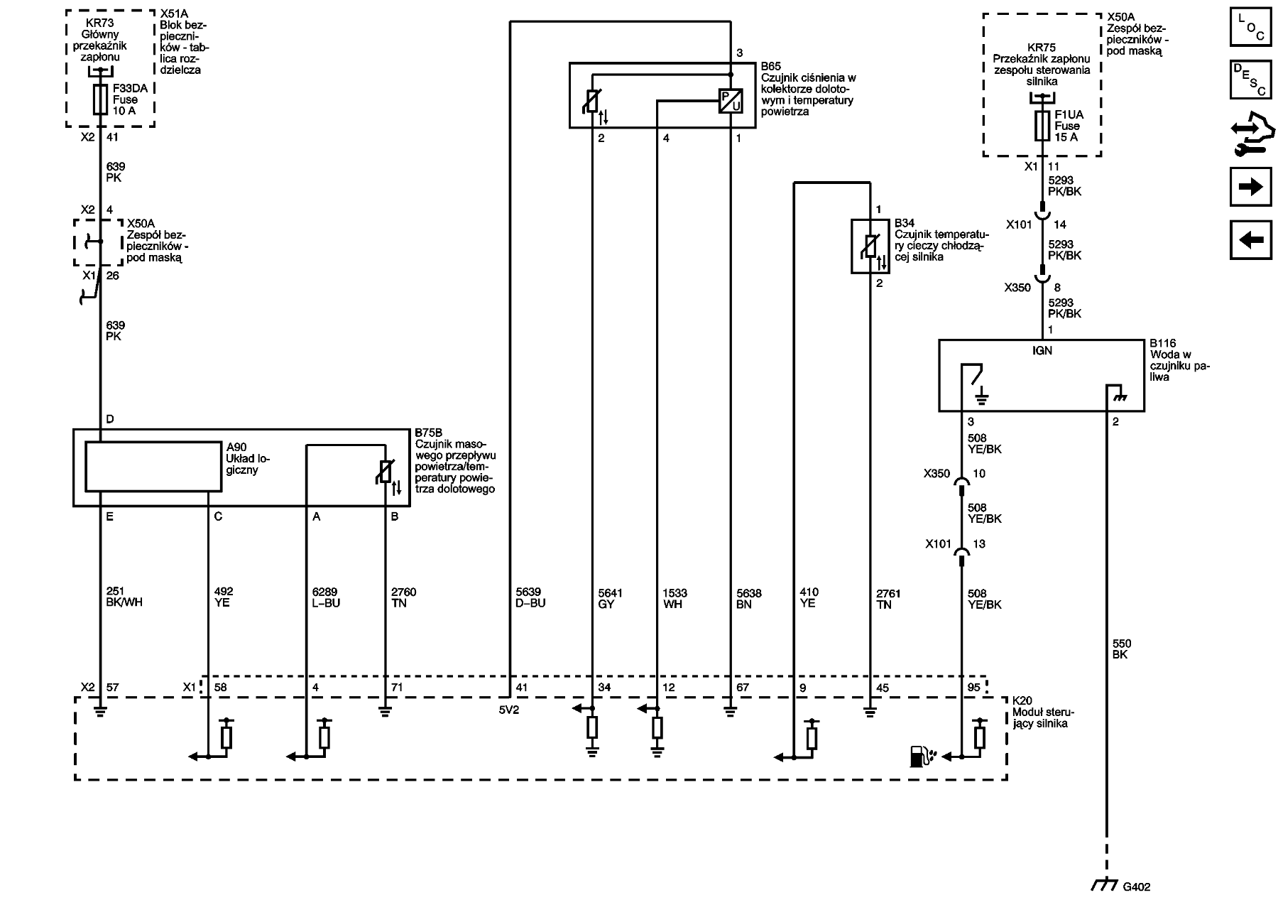 Według TIS-a jest to bezpiecznik F33DA i odpowiada za czujnik masowego przepływu powietrza/temperatury powietrza dolotowego.