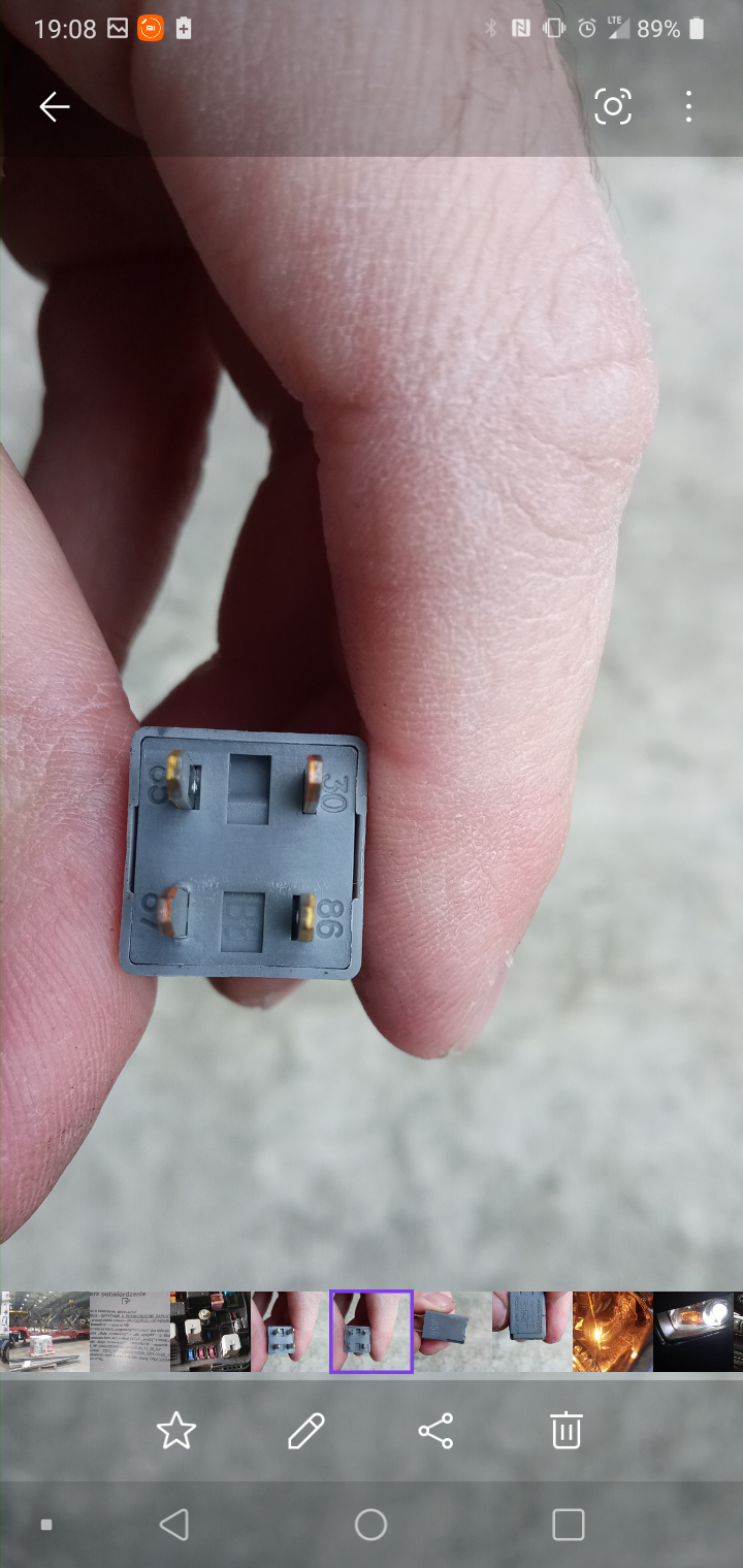 Bezpiecznik jest cały a przekaźnik cyka jsk przełączam światła tylko teraz wyciaglem ten szary przekaźnik i nie wiem jak byl czy tak ja te obok wycięciem w dół czy do gory. Bo jak wycięcie w dol to 30 jest u gory po lewej a jak wyciecie u gory na przekazniku to 30 jest po prawej na dole na zgaszonym silniku pasuje tak i tak