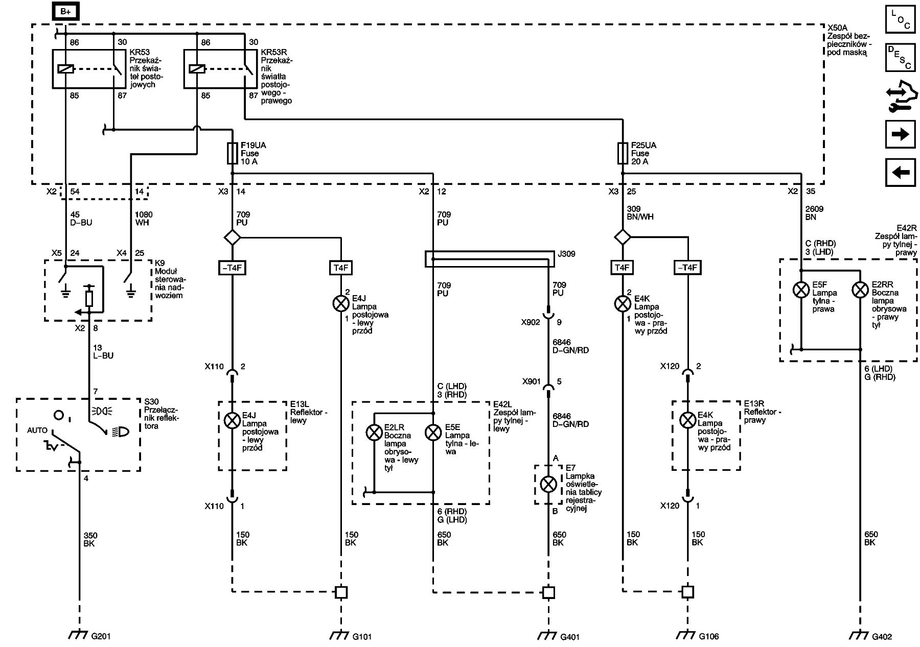 Ok. Jednak przednia lewa lampa pozycyjna też nie swieci co najlepsze wg instrukcji wyciągam bezpieczniki odpowiedzialne za lampy pozycyjne lub za światła i prawa świeci cały czas.