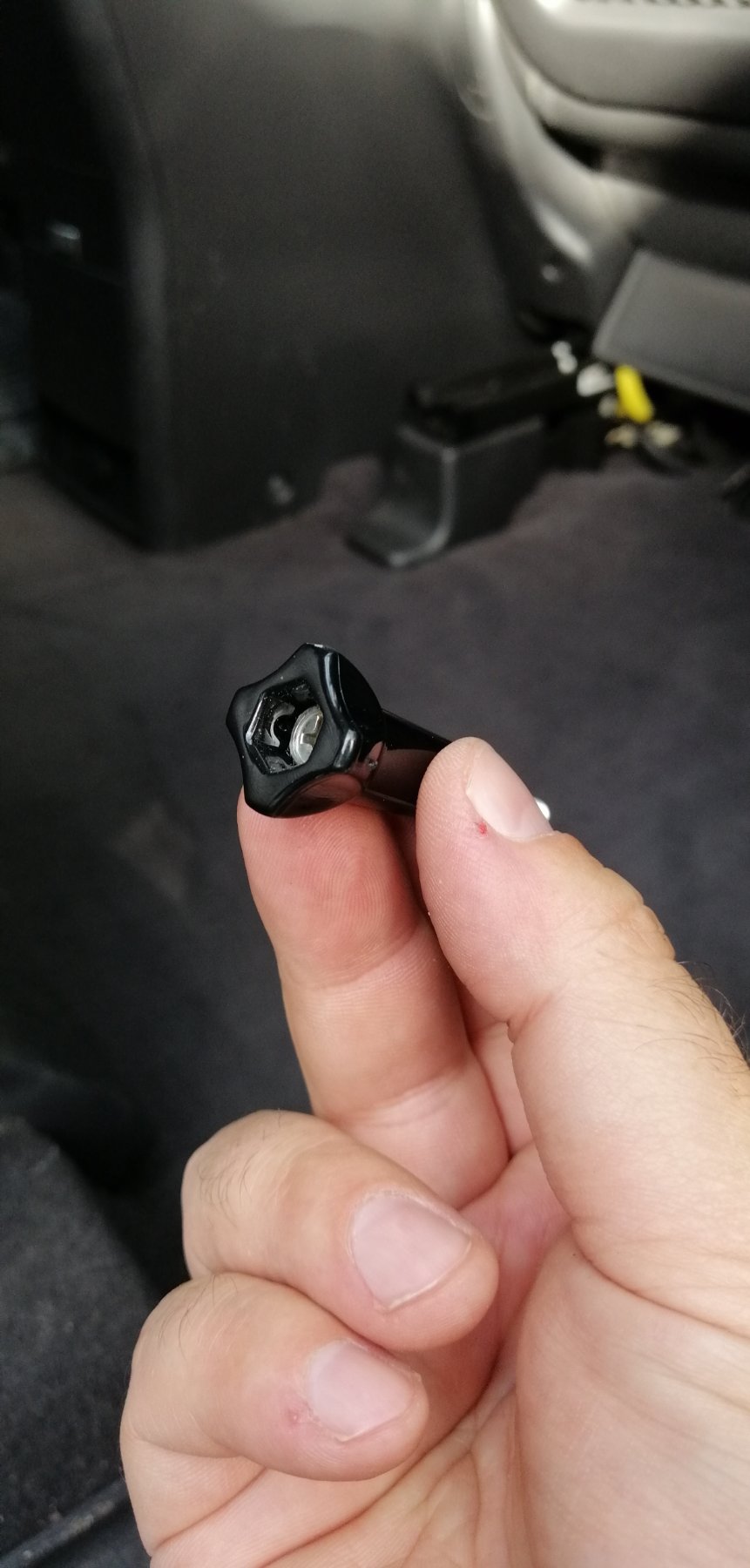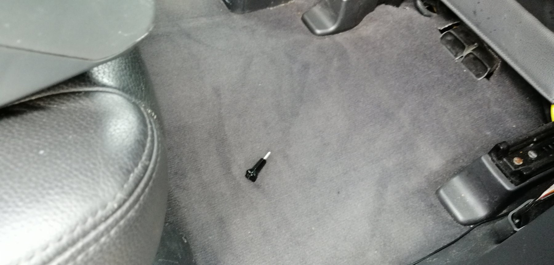 Dzisiaj gdy odkurzałem auto znalazłem taką dziwną śrubę. Leżała sobie na dywaniku przy tylnej kanapie za fotelem pasażera.