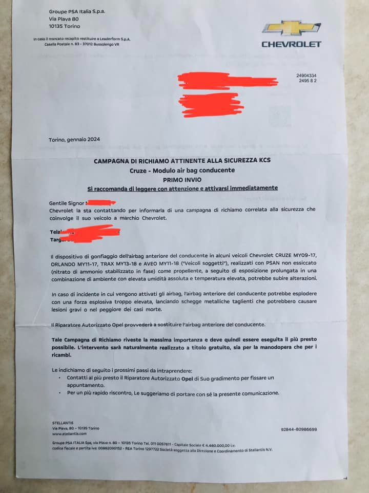 W przypadku samochodów marki Chevrolet Orlando, niebezpieczne poduszki powietrzne kierowcy były montowane w latach 2011-2017. Po wycofaniu się firmy Chevrolet z rynku polskiego w roku 2014, opiekę serwisową nad pojazdami tej marki przejęły autoryzowane stacje obsługi firmy Opel (firma Chevrolet i Opel funkcjonowały w ramach jednego koncernu General Motors). Obecnie w Polsce firma Opel (będąca częścią koncernu Stellantis) nie prowadzi akcji serwisowej polegającej na wymianie poduszek powietrznych, a konsumenci będący posiadaczami samochodów Chevrolet Orlando 2011-2017 (ale również Chevrolet Cruze 2009-2017, Chevrolet Aveo 2011-2018, Chevrolet Trax 2013-2018) zostali pozostawieni z niebezpiecznymi produktami sami sobie. Nadmieniam, że w korespondencji mailowej z autoryzowaną stacją obsługi Opel Marimex zostałem poinformowany, iż wymiana poduszki powietrznej kierowcy na koszt klienta kosztuje 5062,62 zł.