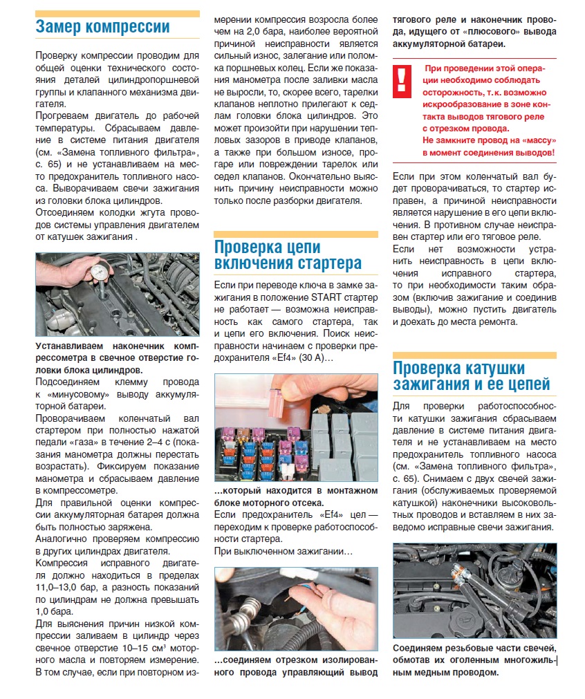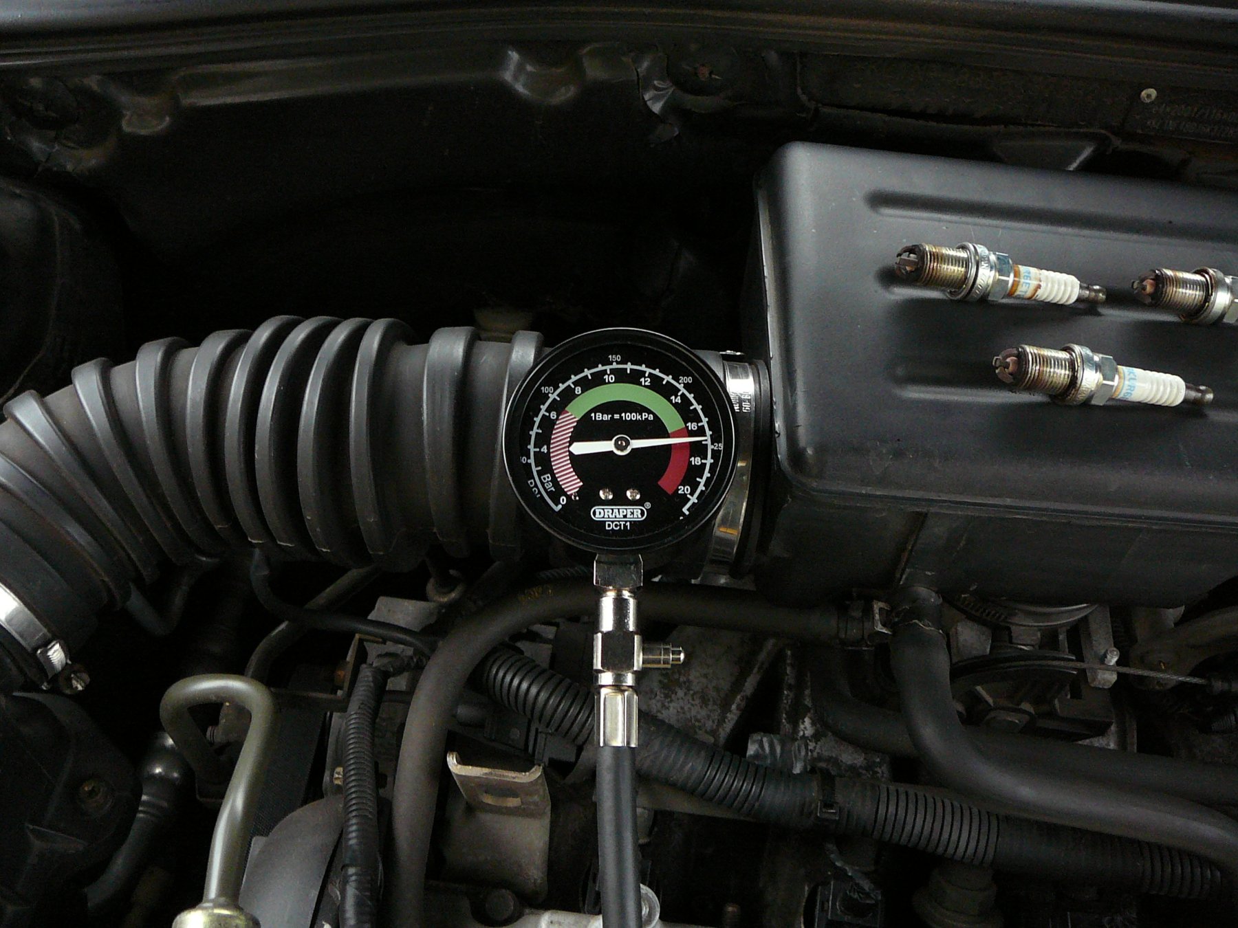 Kompresja działającego silnika musi być pomiędzy 11,0–13,0 barów i różnica odczytów na cylindrach nie powinna przekraczać 1,0 bar.