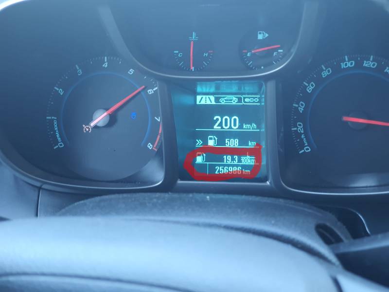 Obliczam to metoda- ile l benzyny tankniete i ile przejechane (do rezerwy). Nie chciało mi się tego gniota pod korek tankować