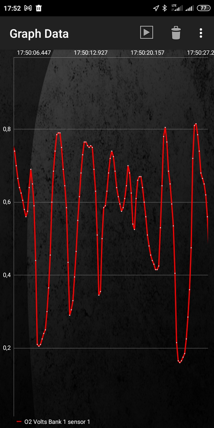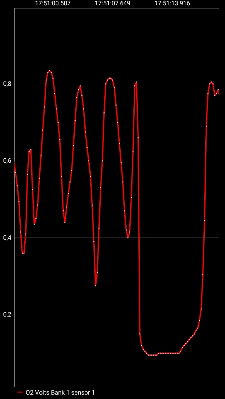 Dzisiaj byłem na diagnostyce. Wykres sondy lambda przed katem w trybie awaryjnym(z kontrolką silnika) w miarę normalny, ale po wykasowaniu błędu, wykres sondy był tragiczny, dolne fale były w miarę okej, ale górne fale były przedłużone 2-3 razy, falowały u góry, i w tym samym czasie falował silnik.