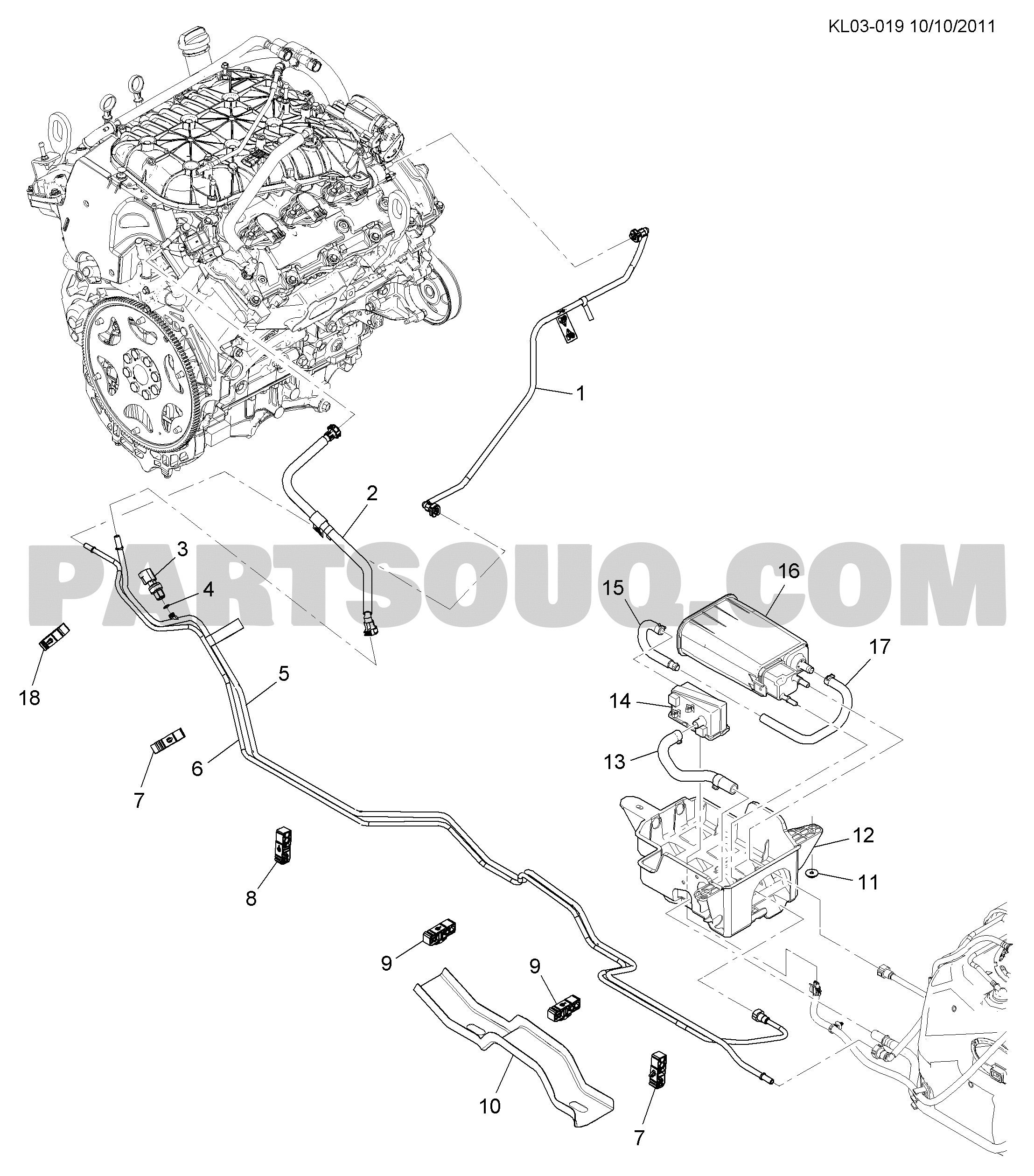 Według tego co pokazuje po numerze VIN to czujnik u ciebie powinien się znajdować na przewodach paliwowych w okolicy komory silnika, ten pod numerem 3.