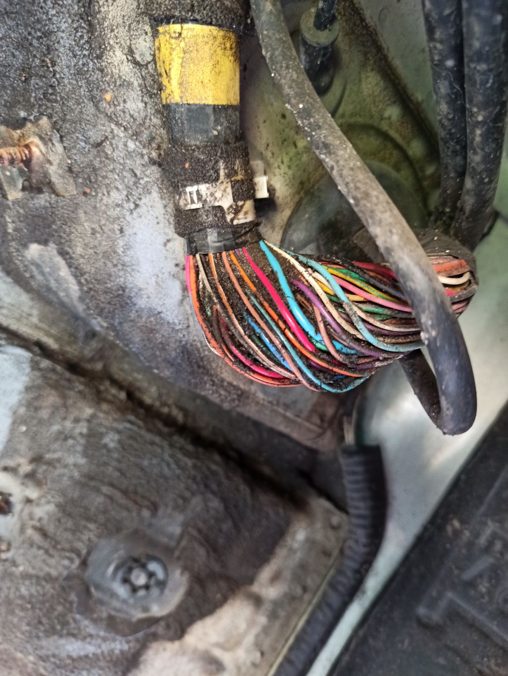 Przy okazji konserwacji i wyjęciu nadkola lewego znalazłem taką wiązkę. Pięknie nieosłonięta częściowo, między kablami mokre błoto. Nie wiem czy tak ma być czy ktoś zdjął izolację ale to potencjalne miejsce problemów z wiązką, suszy się wykruszy i zaizoluję. Może tu jest pies pogrzebany z tymi błędami, chociaż u mnie jeszcze nic. Ale jak pęknie izolacja w mokrym środowisku to będzie się działo.
