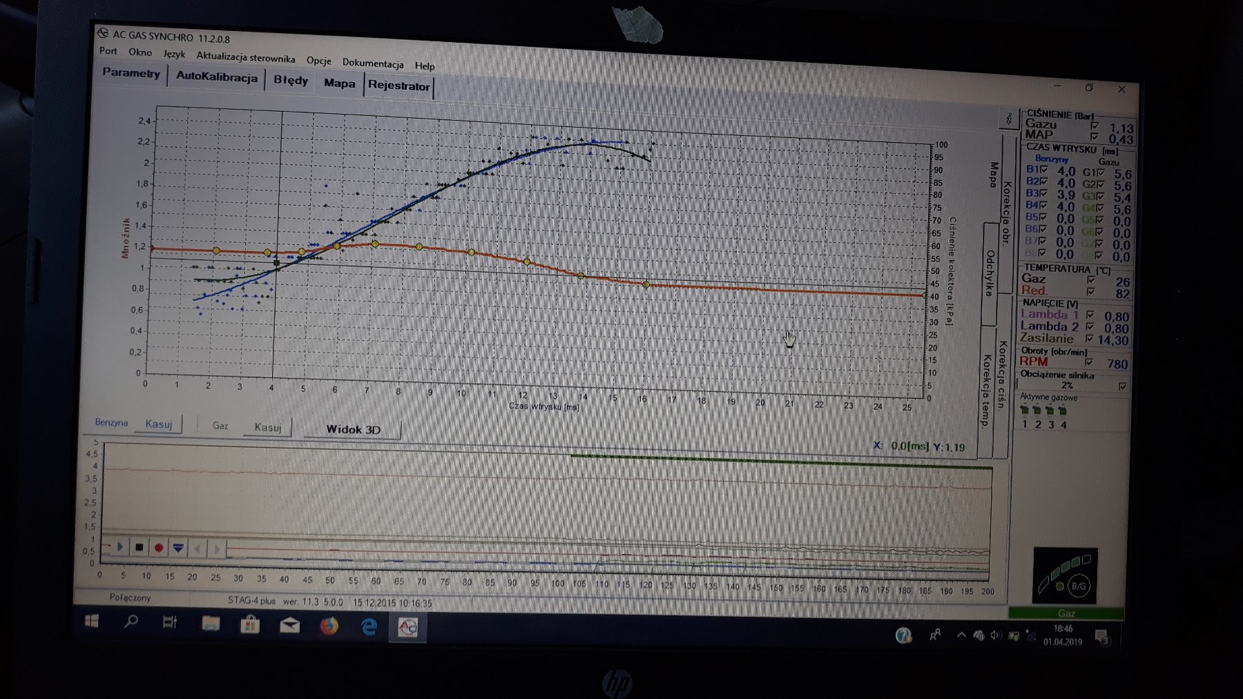 Drugi screen jest z programu STAGA. Radzę też się zaopatrzyć w interfejs. Może być po blutooth to już można wtedy na telefonie korygować mnożnik.