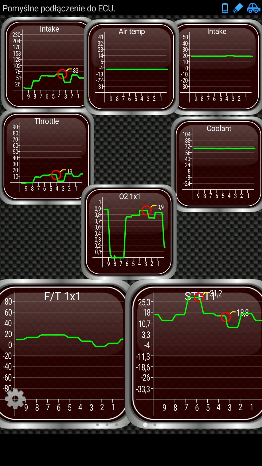 W Torque trzeba oprócz lambdy obserwować cały czas okienko STFT1. Są to krótkoterminowe korekty. Nie powinny wychodzić poza 15. NAjlepiej około 0.